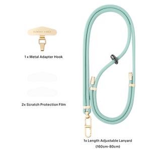 A versatile crossbody lanyard designed for everyday freedom. Adjust the strap length from 80cm to 160cm to match your look and comfort. Built with sturdy metal buckles and an 8mm nylon strap that can hold up to 80kg. The vegan leather smart hook lets you clip on keys, AirPods, or any accessories with ease. Move lightly, live stylishly, hands free.