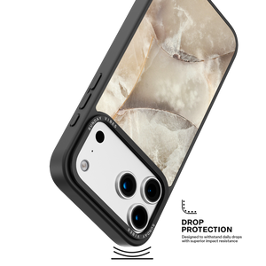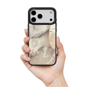 Adorn your device with the refined luxury of the Alabaster Whirl iPhone Case. This striking design features a high-fidelity print of natural stone, showcasing creamy white and soft beige tones with elegant veining, creating a sophisticated and timeless aesthetic. This high-end look is protected by the case's premium 3-layer back panel: a base layer for protection, a middle ultra HD gallery print layer, and a velvet smooth anti-scratch and anti-fingerprint top coating.