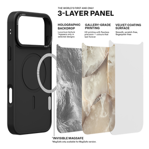 Our globally pioneering three‑layer back panel technology combines: Laser‑textured base layer – adds depth and dimensionality to the design (effects may vary depending on artwork). Ultra‑high‑definition gallery‑grade print layer – delivers vivid, lifelike colours and striking detail. Velvet skin‑feel protective coating – provides scratch resistance and fingerprint protection while offering a soft, refined touch.