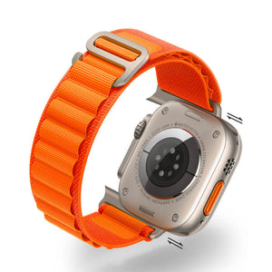 Experience rugged elegance with the Black Alpine Loop. Lightweight, woven material ensures durability and comfort. Adjustable design for a secure fit. Perfect for outdoor adventures. Elevate your Apple Watch.