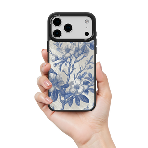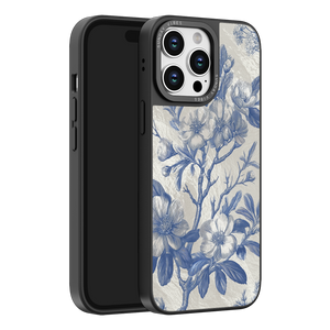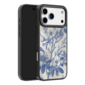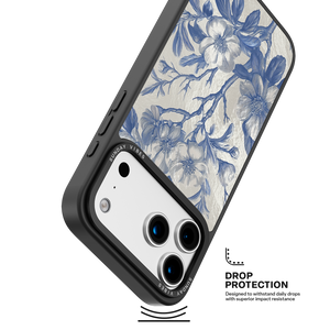Make a captivating and elegant statement with the Antique Azure iPhone Case. The detailed blue floral print evokes the timeless charm of vintage engravings, while the crinkled metallic silver holographic backdrop provides a dramatic contrast. This sophisticated aesthetic is perfect for those who appreciate classic design with a dazzling, modern twist.