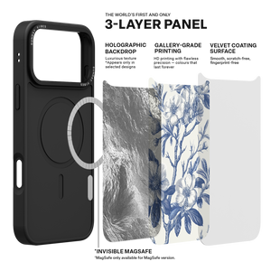 This slim and lightweight protective phone case delivers robust daily protection without the bulk. Its full shockproof construction includes raised camera and front bumpers, offering comprehensive screen and lens protection. The comfortable design is built for effortless handling, and the quality is preserved by its 3-layer back panel system (holographic base with texture, ultra HD print, and velvet smooth anti-scratch/anti-fingerprint coating). For MagSafe version cases, an invisible built-in MagSafe function is seamlessly included.