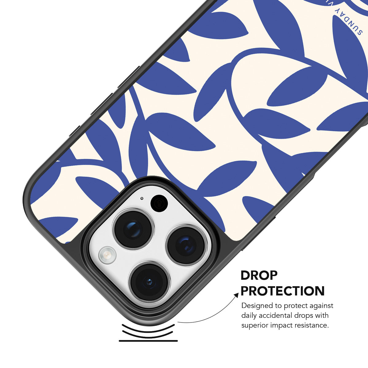 Drift into the calm of the “Azure Breeze” iPhone case, featuring flowing blue leaf patterns on a soft ivory background. This minimalist yet captivating design brings a sense of natural movement and serenity to your phone, offering stylish protection for your daily adventures.