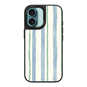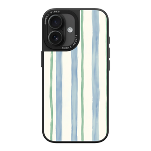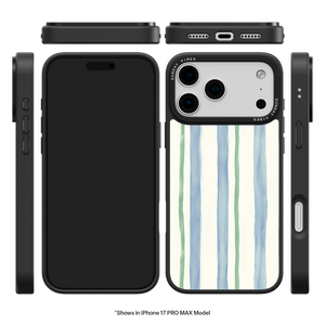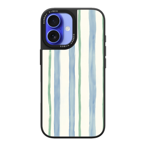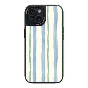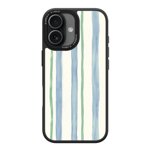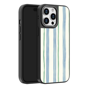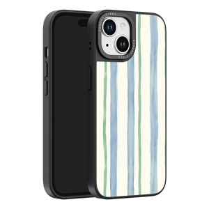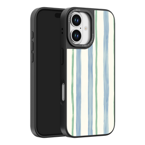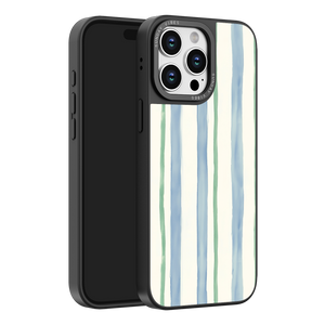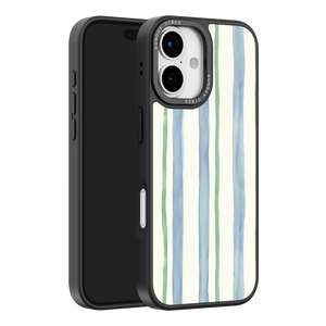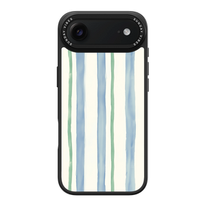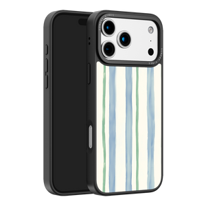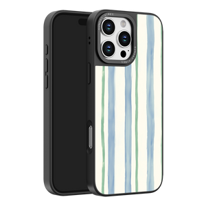 Capture the tranquil beauty of the Azure Meadow Stripe iPhone Case. This exquisite design showcases gentle, vertical watercolour stripes alternating between soft azure blue and muted meadow green, evoking a sense of calm and natural elegance. The fluid, hand-painted lines lend a unique, serene touch to your style. The core aesthetic integrity is preserved by the case's premium 3-layer back panel: a base layer for protection, a middle ultra HD gallery print layer for precise detail, and a velvet smooth anti-scratch and anti-fingerprint top coating.