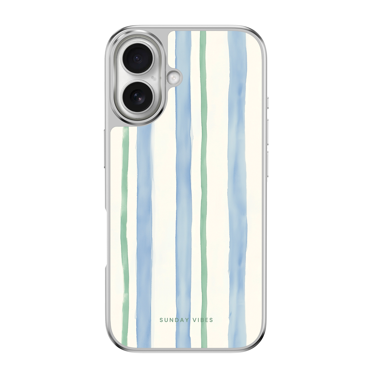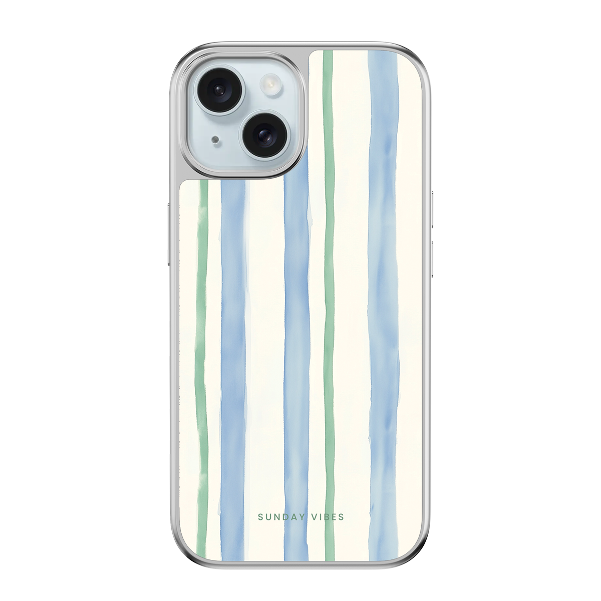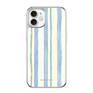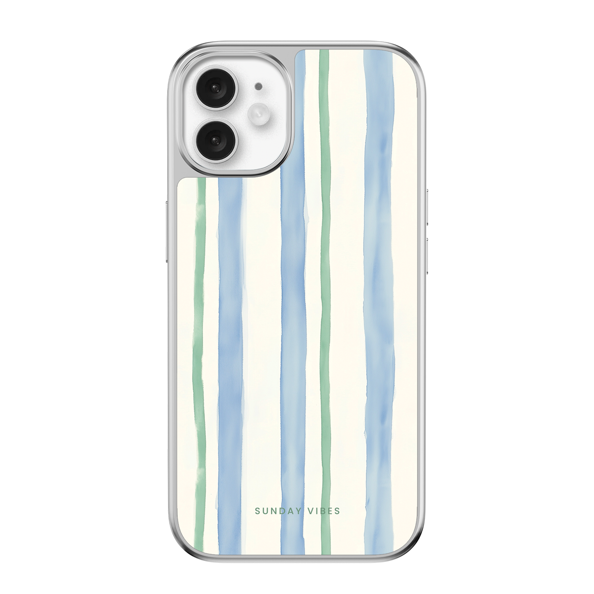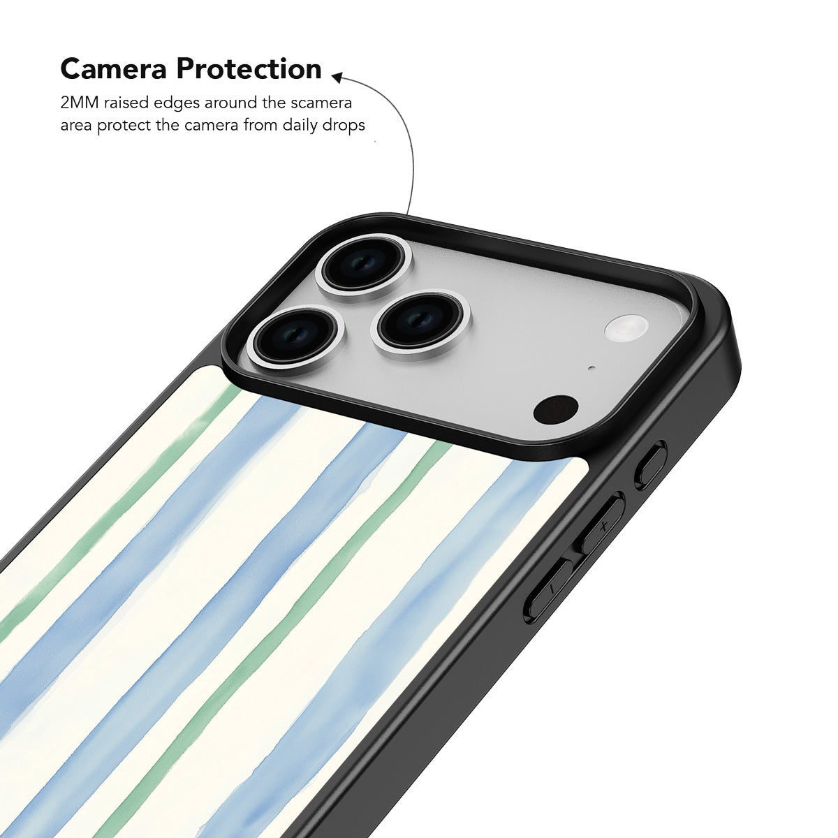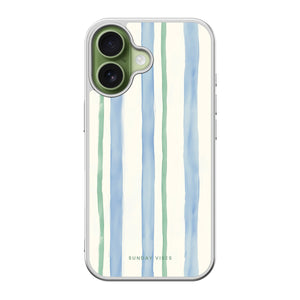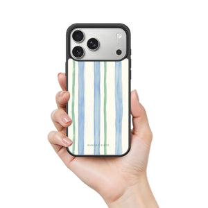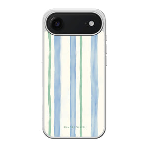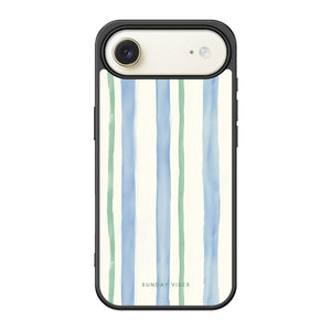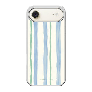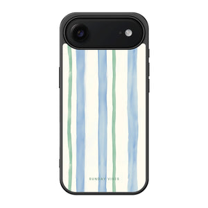 Adorn your iPhone with the tranquil charm of the Azure Meadow Stripe iPhone Case. This case presents a serene pattern of vertical stripes in soft shades of blue, reminiscent of a clear sky, interspersed with delicate green stripes that evoke the freshness of a meadow. The watercolor - like texture imparts a hand - crafted, organic feel, creating a calming and aesthetically pleasing design.