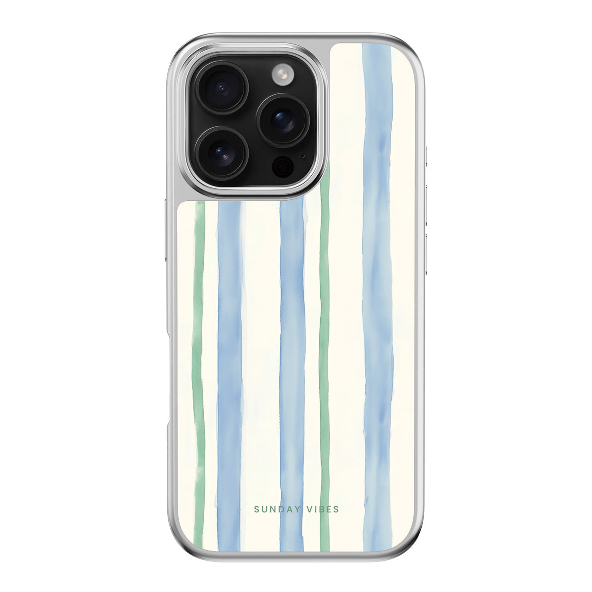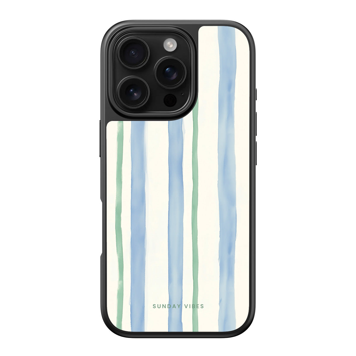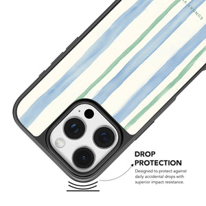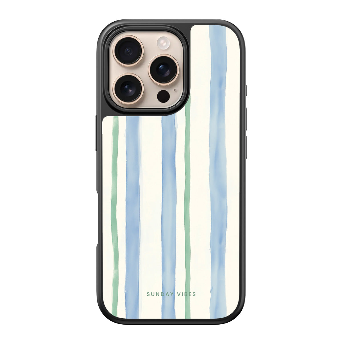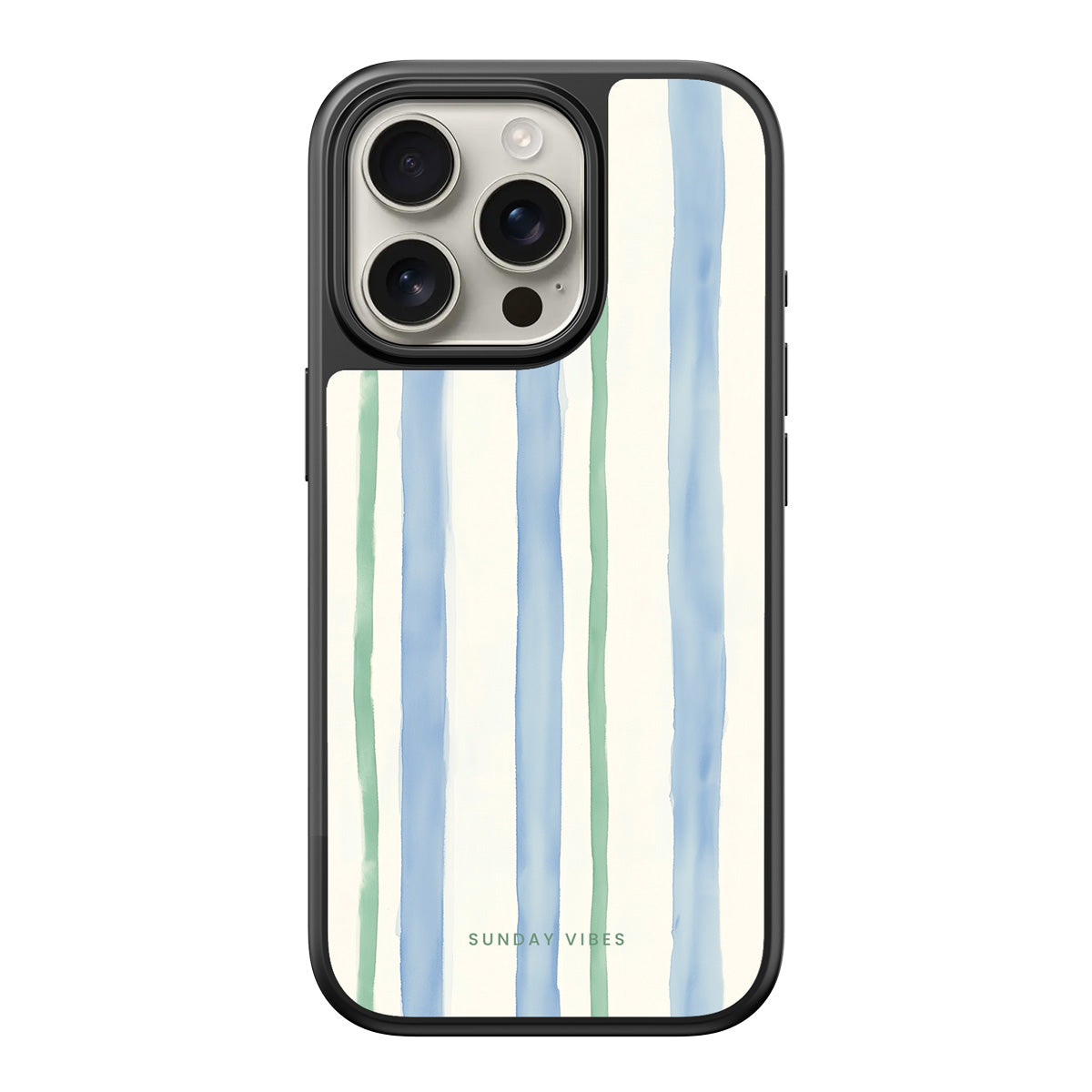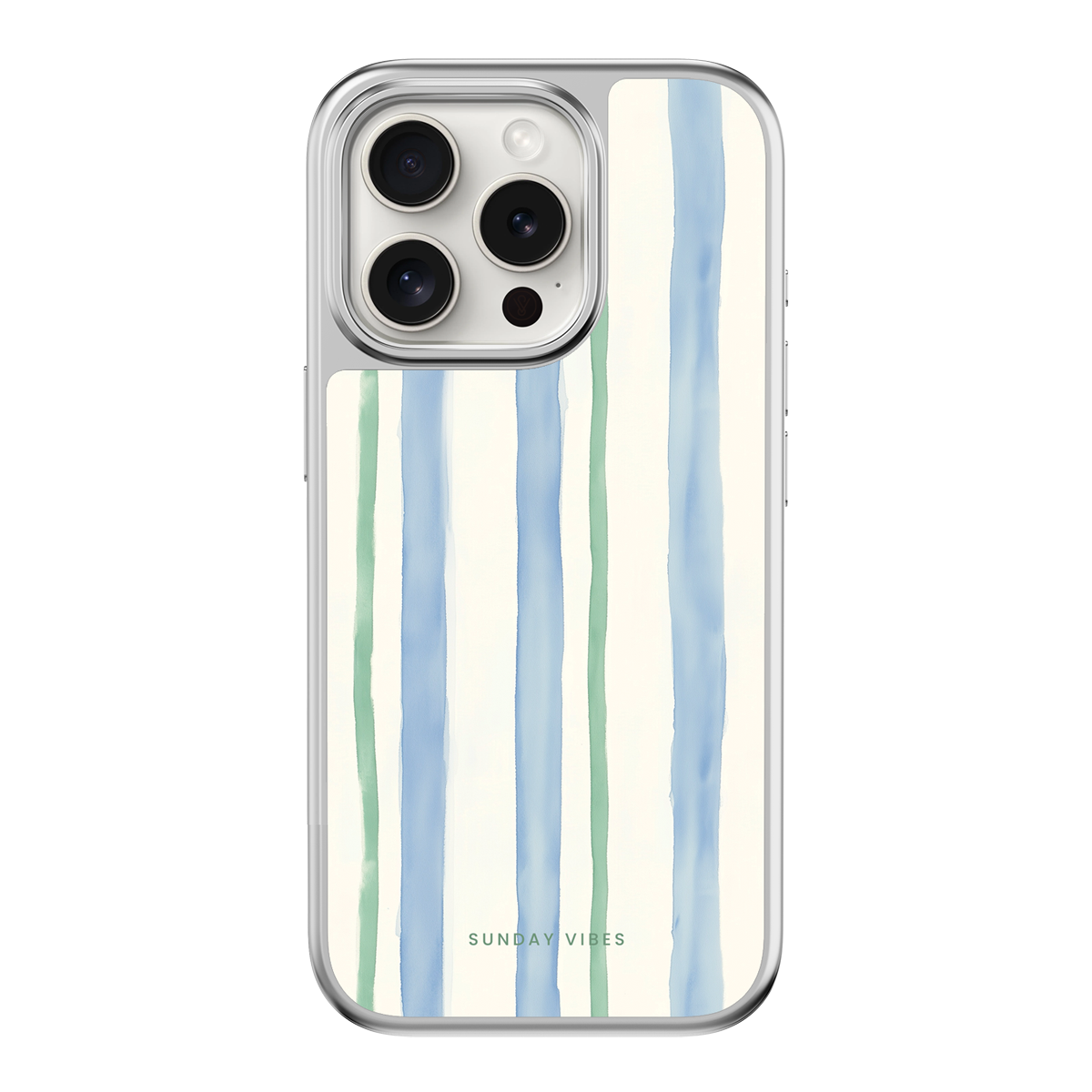 Adorn your iPhone with the tranquil charm of the Azure Meadow Stripe iPhone Case. This case presents a serene pattern of vertical stripes in soft shades of blue, reminiscent of a clear sky, interspersed with delicate green stripes that evoke the freshness of a meadow. The watercolor - like texture imparts a hand - crafted, organic feel, creating a calming and aesthetically pleasing design.
