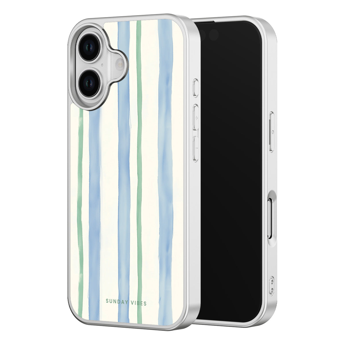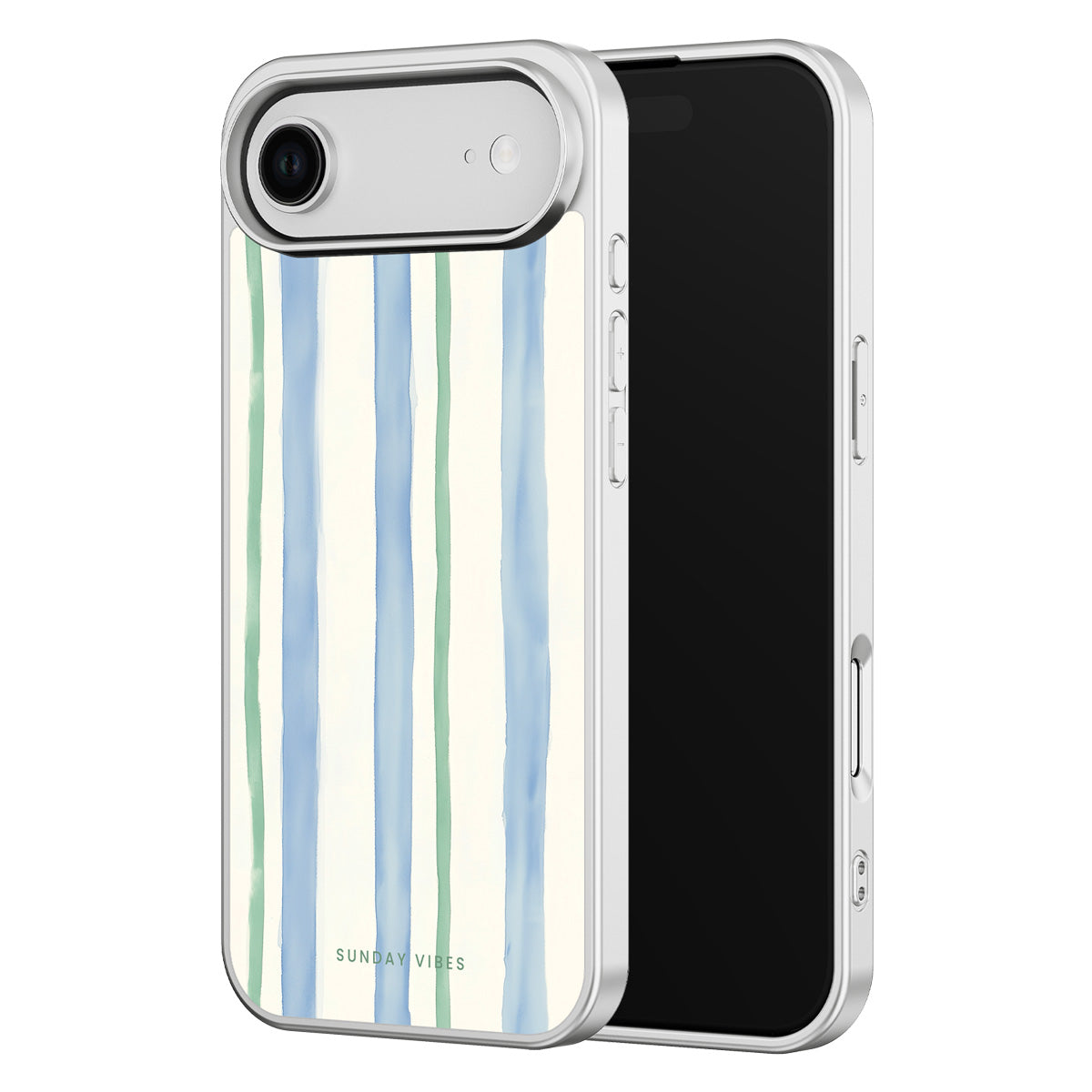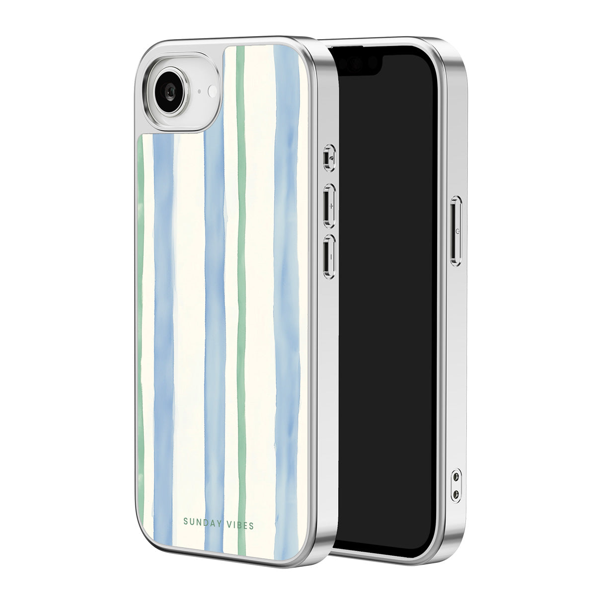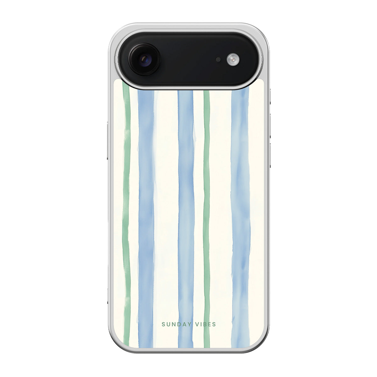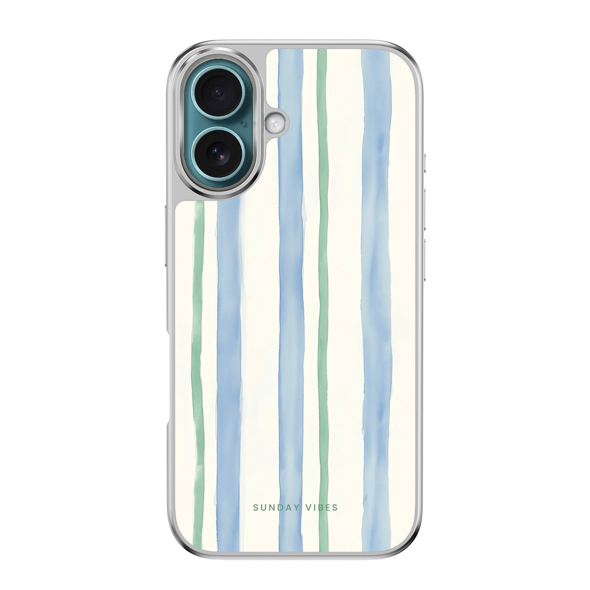 Adorn your iPhone with the tranquil charm of the Azure Meadow Stripe iPhone Case. This case presents a serene pattern of vertical stripes in soft shades of blue, reminiscent of a clear sky, interspersed with delicate green stripes that evoke the freshness of a meadow. The watercolor - like texture imparts a hand - crafted, organic feel, creating a calming and aesthetically pleasing design.