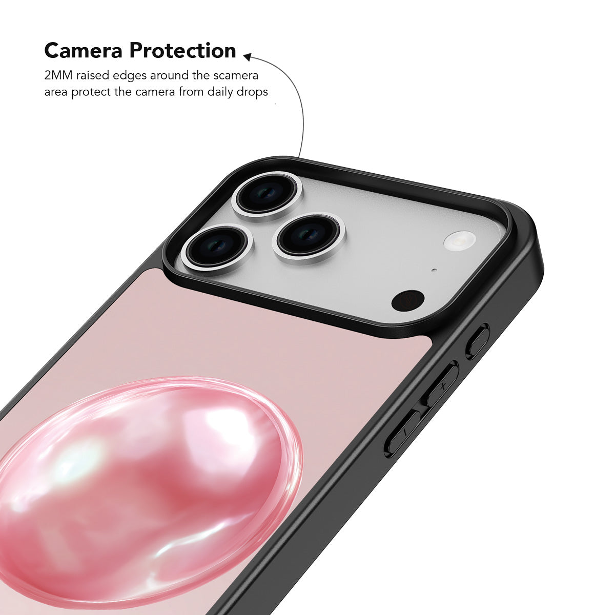 Engineered with a robust camera ring in a raised design, this protective structure shields your camera from impacts. The three-dimensional surround elevates the protruding lens by approximately 1.8mm, while the durable materials ensure reliable protection against accidental drops.