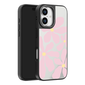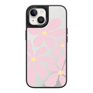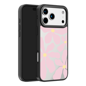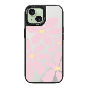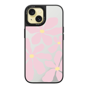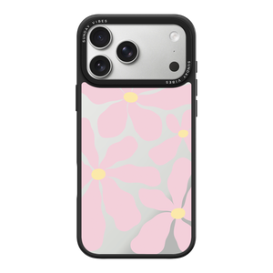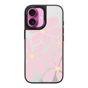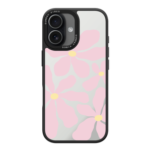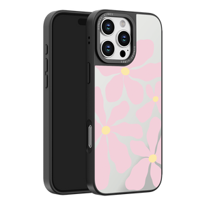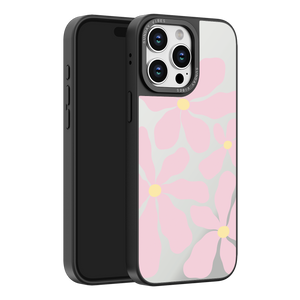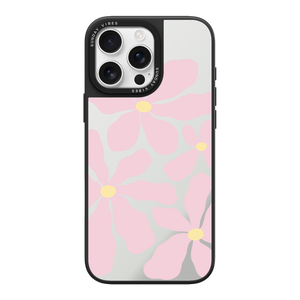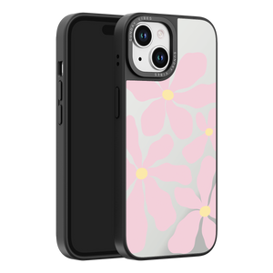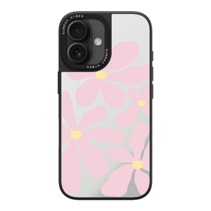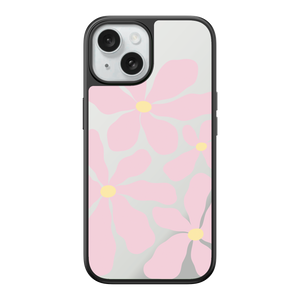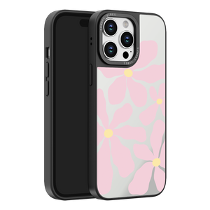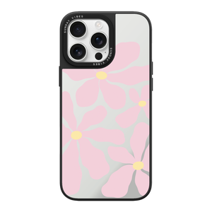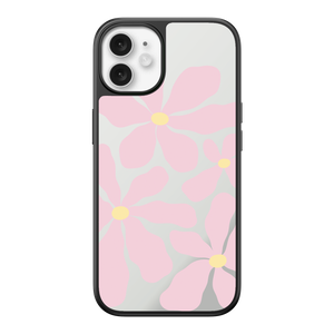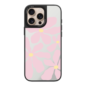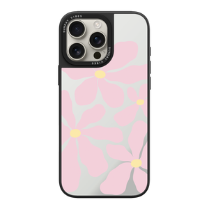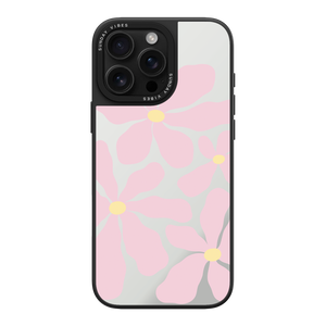 Adorn your device with the bold, graphic charm of the Bubblegum Bloom iPhone Case. This striking design features large, overlapping flowers in cheerful light pink and sunny yellow, set against the highly reflective, functional mirror backing. This fun, expressive aesthetic ensures you are always ready for a quick style check or selfie. The vibrant print and texture are applied directly onto the mirror surface for maximum visual impact.