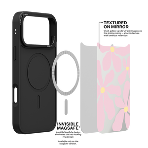 *Mirror Case Disclaimer: Our Mirror Case is designed as a fashion accessory, not a true glass mirror. The back panel is made from PVC plastic, which means it may show fingerprints or light scratches over time — just like a regular mirror surface. The reflection may appear slightly distorted due to the printed design or MagSafe ring. It’s not intended for checking your reflection, but for adding a chic, mirror‑inspired vibe to your phone.
