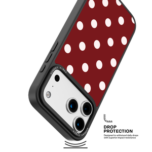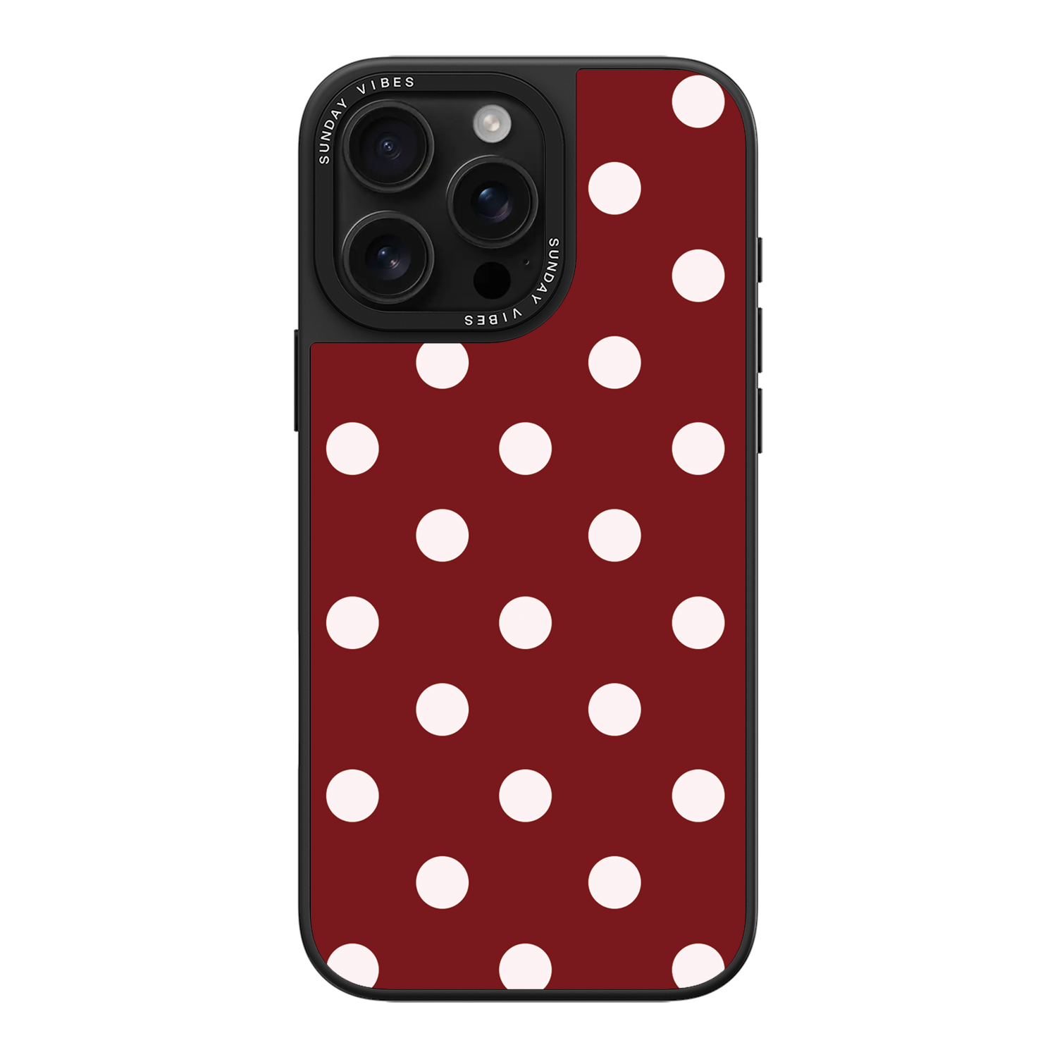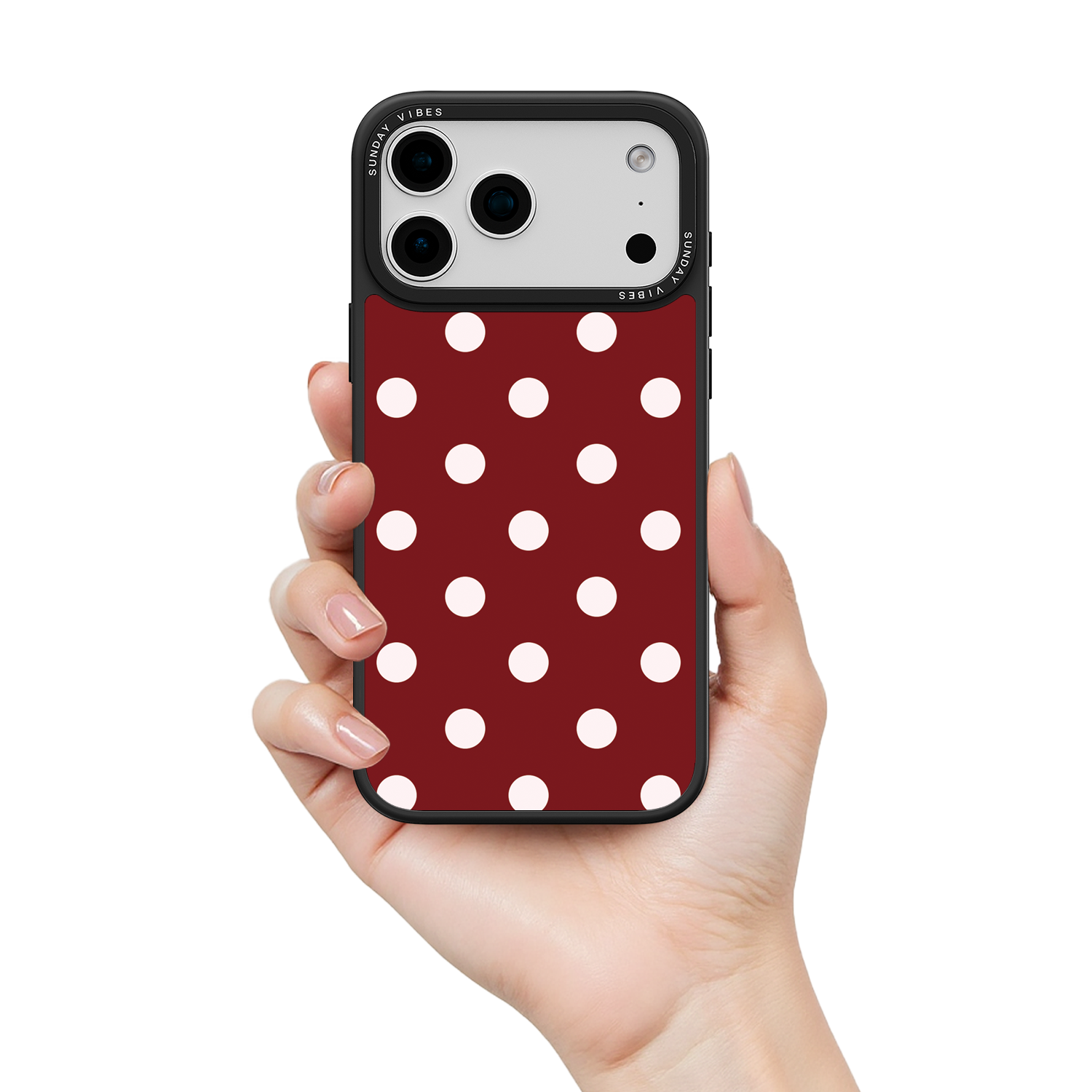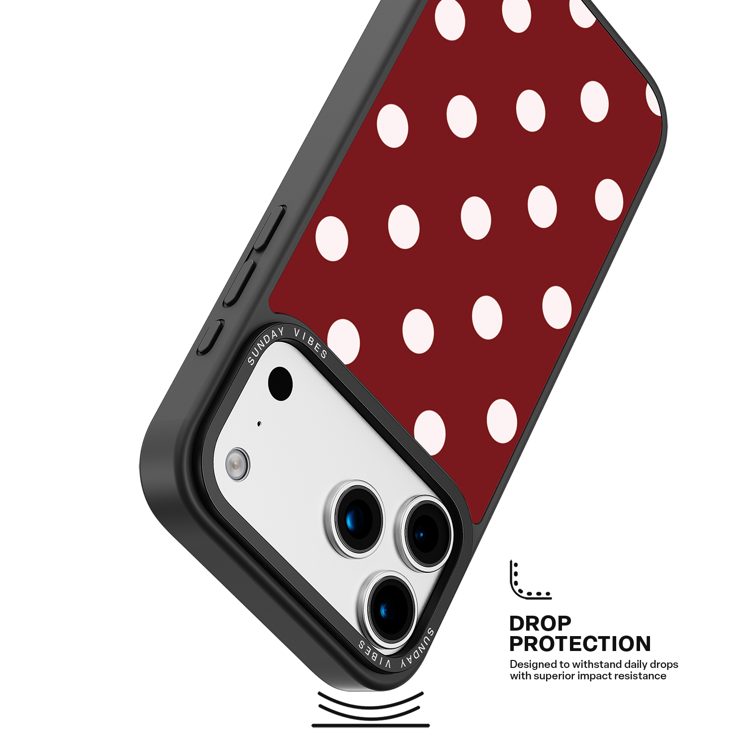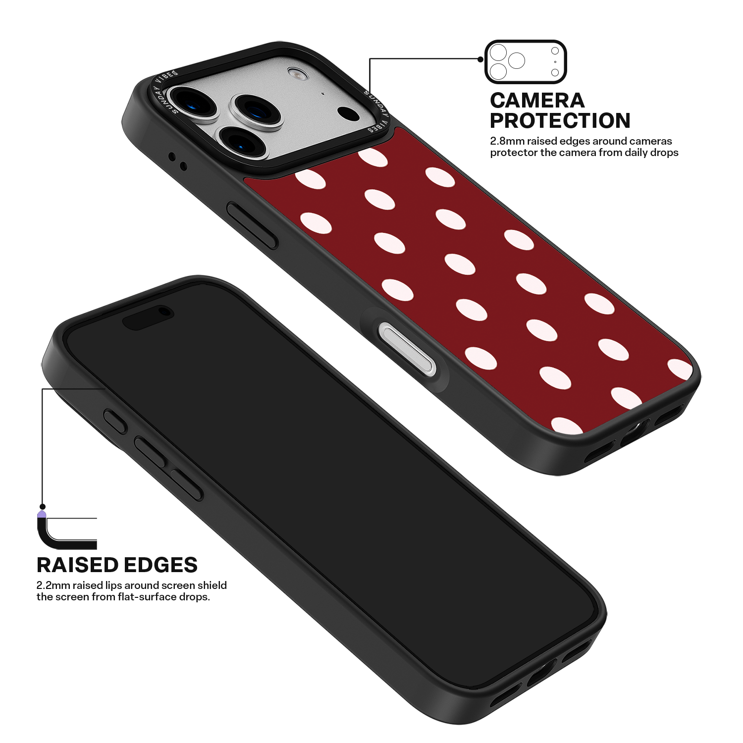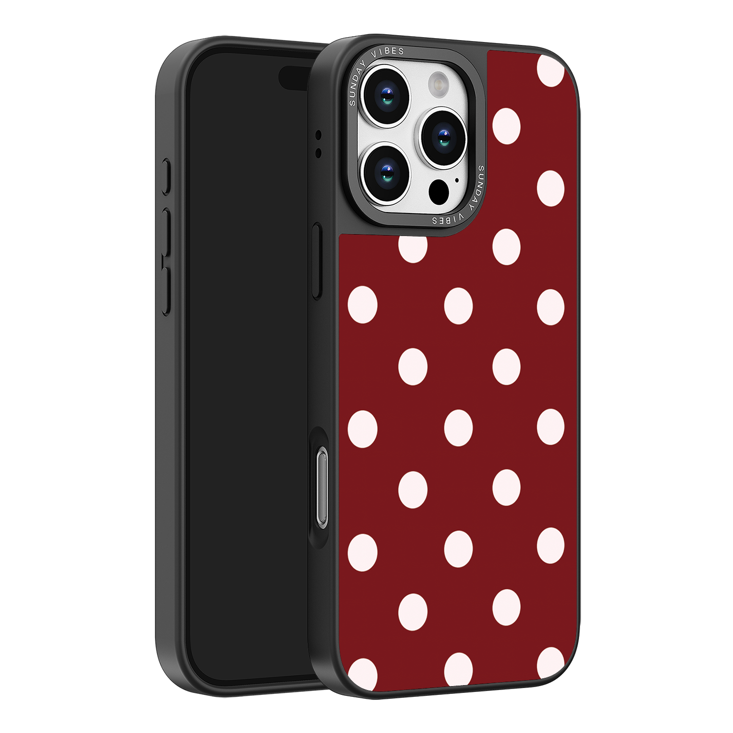 Elevate your look with the fun, classic charm of the Cherry Pop iPhone Case. The deep red canvas provides a stunning foundation for the large, evenly spaced pink dots, lending a playful, retro energy to your everyday gear. This cheerful, high-contrast design ensures a uniquely stylish accessory.