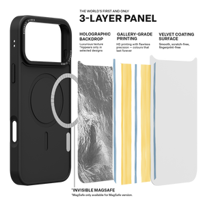 Our globally pioneering three‑layer back panel technology combines: Laser‑textured base layer – adds depth and dimensionality to the design (effects may vary depending on artwork). Ultra‑high‑definition gallery‑grade print layer – delivers vivid, lifelike colours and striking detail. Velvet skin‑feel protective coating – provides scratch resistance and fingerprint protection while offering a soft, refined touch.