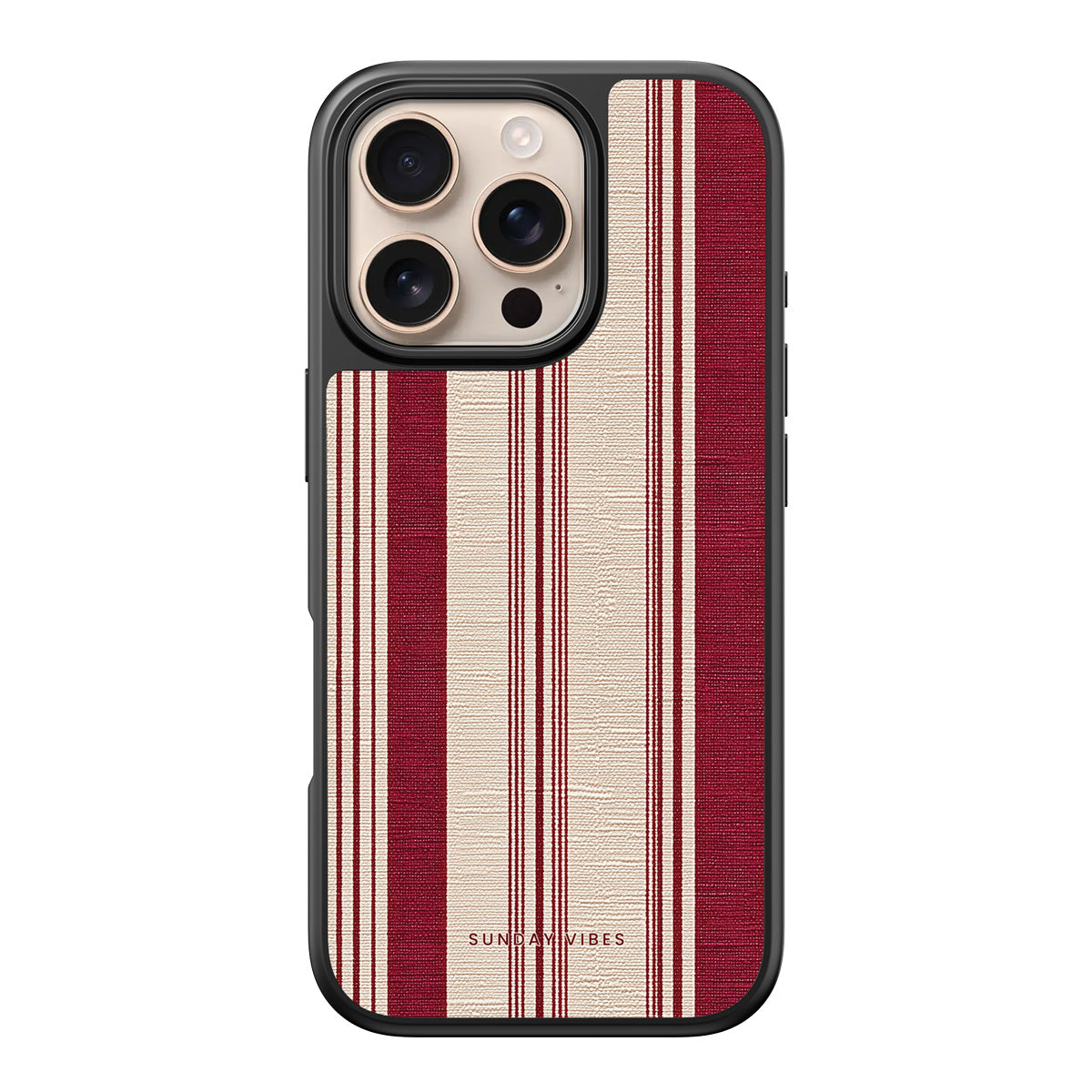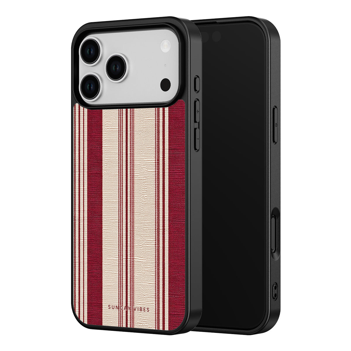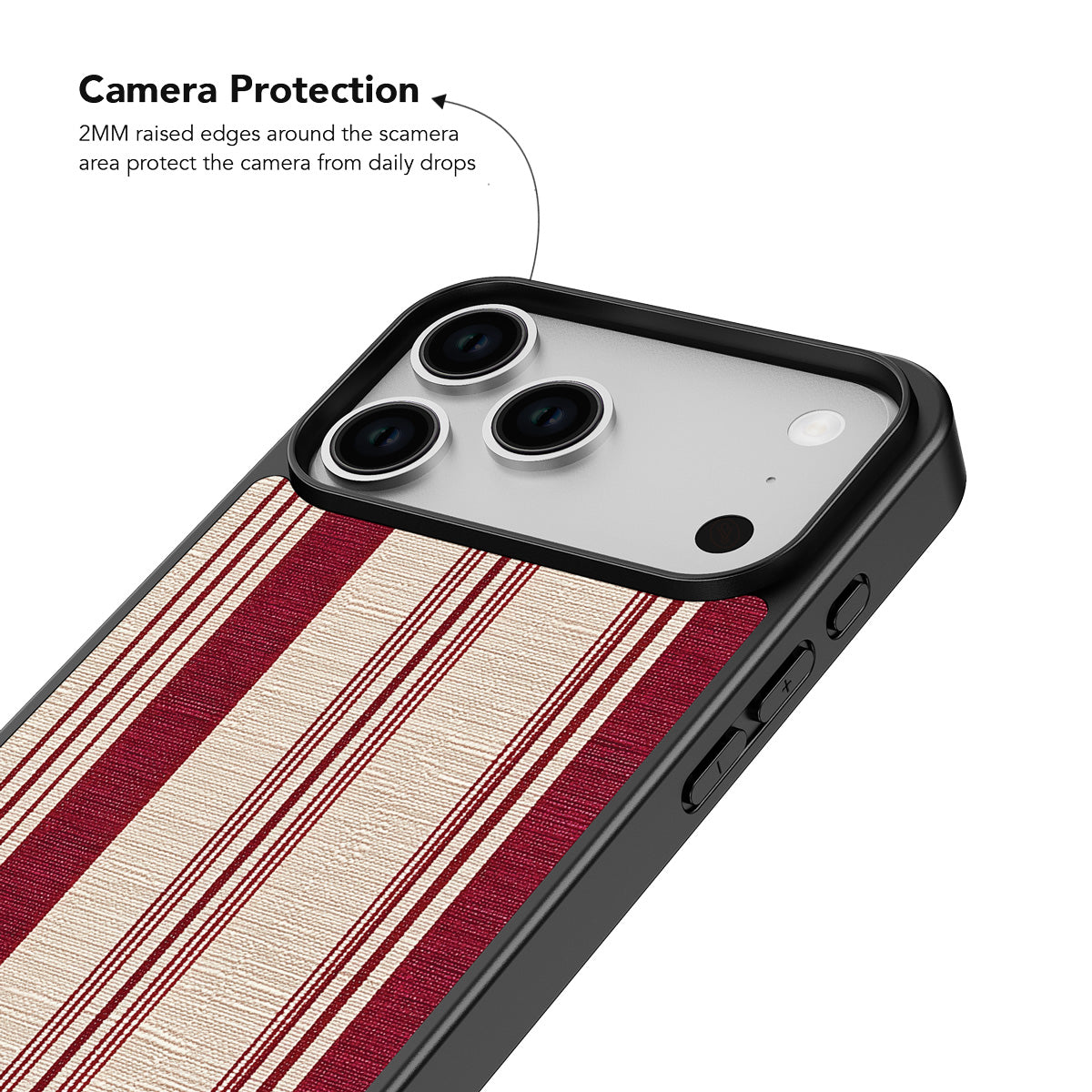 Elevate your iPhone's look with the Crimson Linen Stripe iPhone Case. Its surface showcases a sophisticated pattern of bold and subtle red stripes on a linen - textured background, exuding a classic yet stylish vibe. The rich crimson hues paired with the neutral beige create a visually appealing contrast. Built with shock - absorbent edges, it offers reliable protection against daily impacts. The case's slim profile ensures easy handling and portability, making it a perfect accessory for those who desire a blend of elegant design and practical safeguarding.