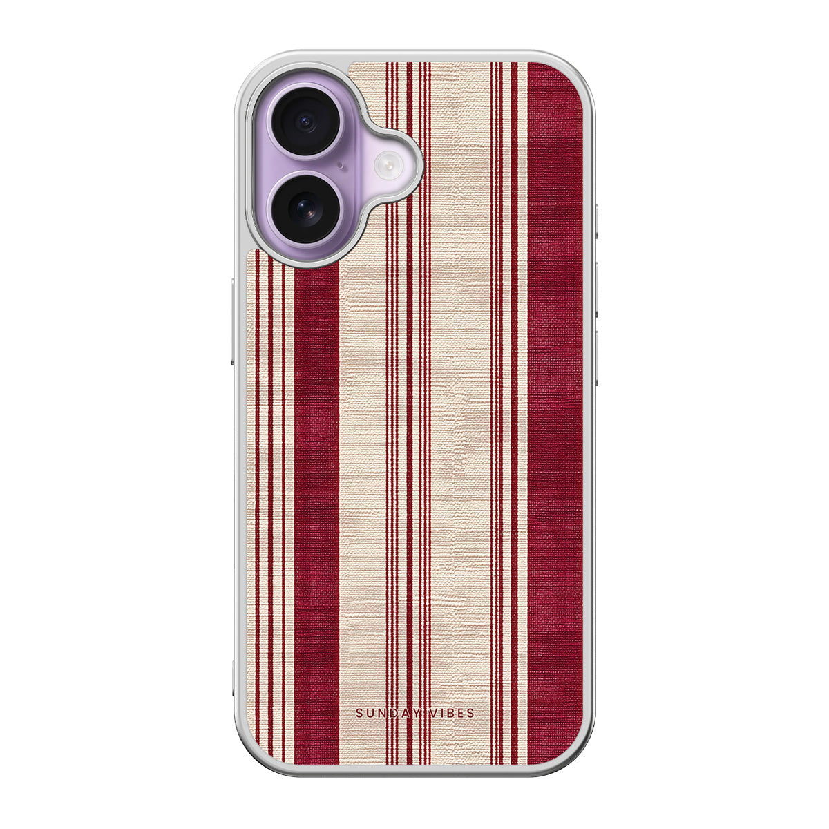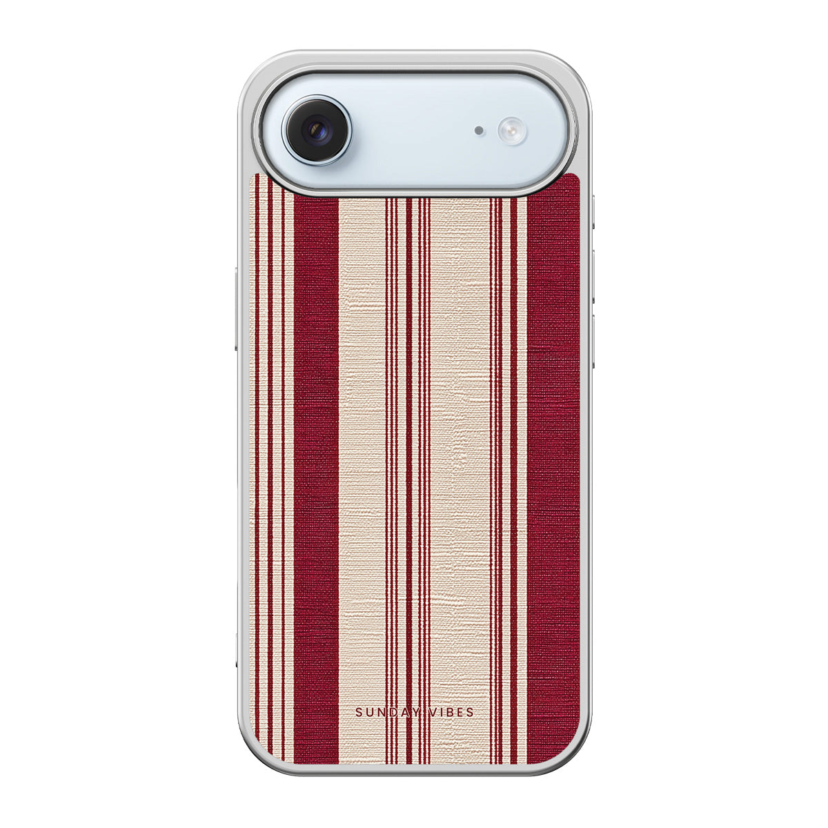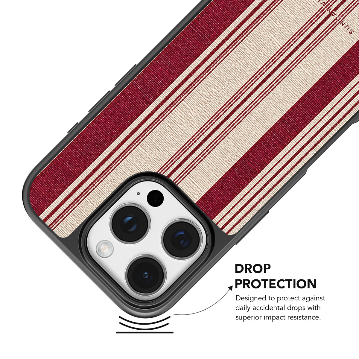 Elevate your iPhone's look with the Crimson Linen Stripe iPhone Case. Its surface showcases a sophisticated pattern of bold and subtle red stripes on a linen - textured background, exuding a classic yet stylish vibe. The rich crimson hues paired with the neutral beige create a visually appealing contrast. Built with shock - absorbent edges, it offers reliable protection against daily impacts. The case's slim profile ensures easy handling and portability, making it a perfect accessory for those who desire a blend of elegant design and practical safeguarding.