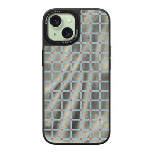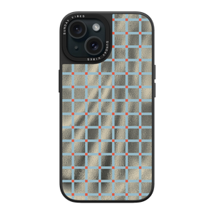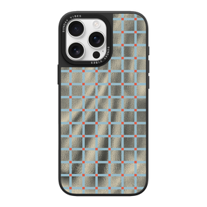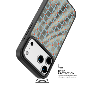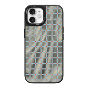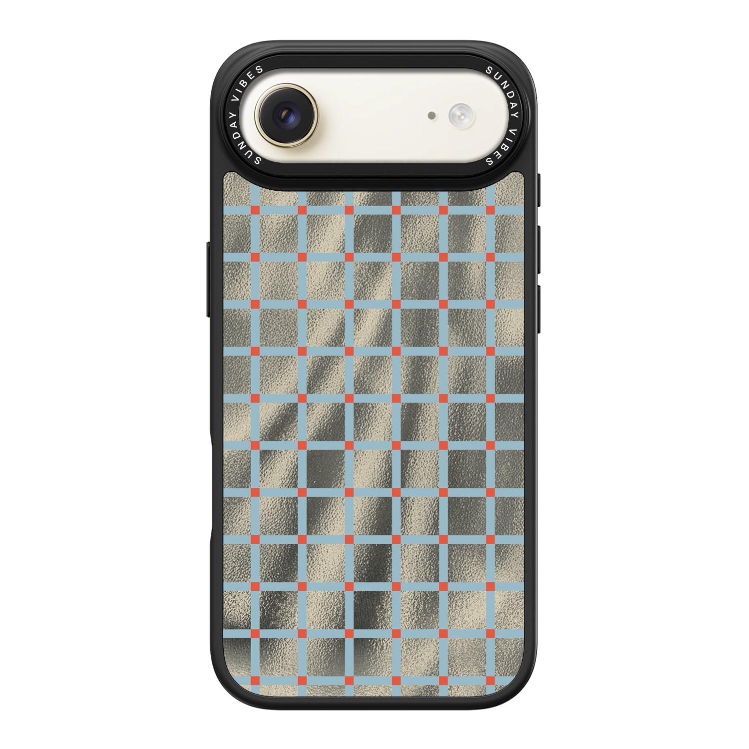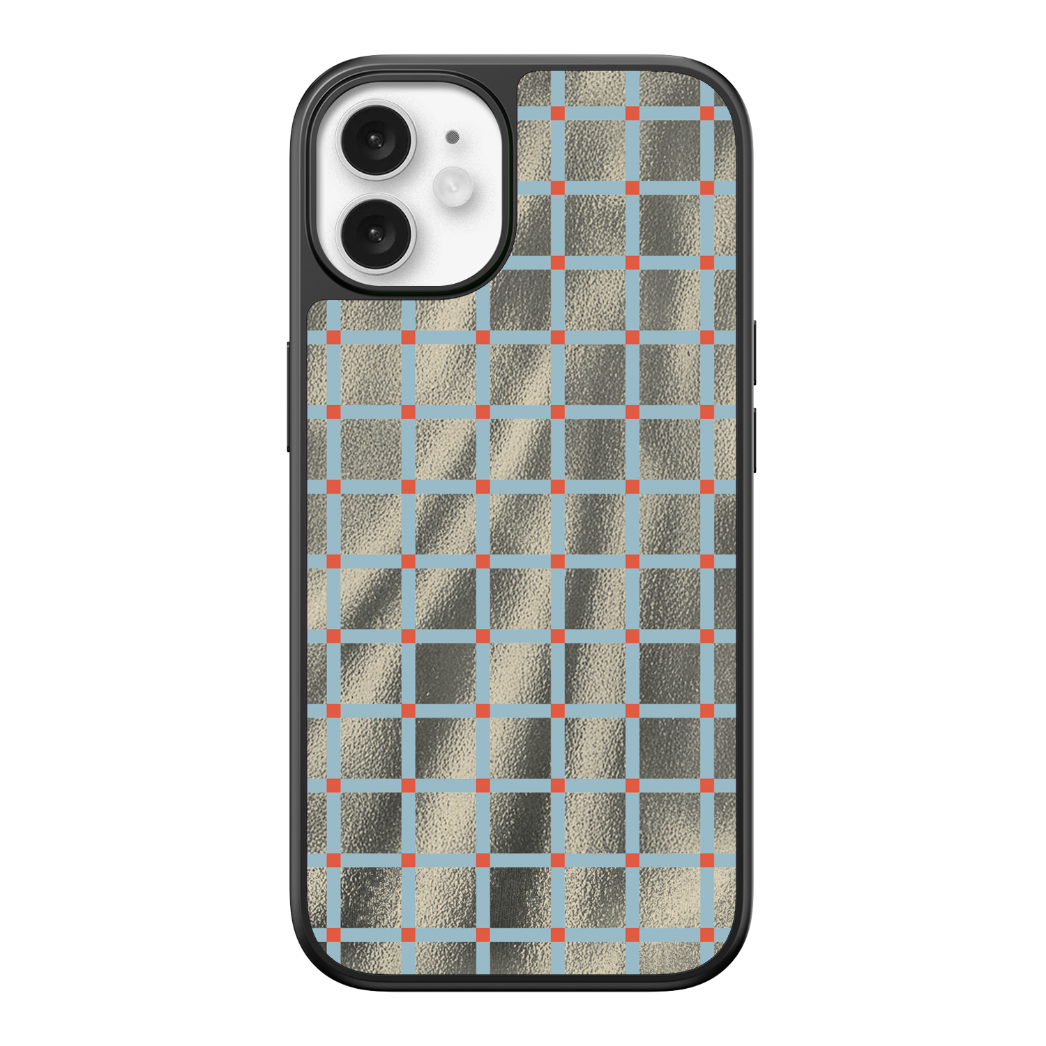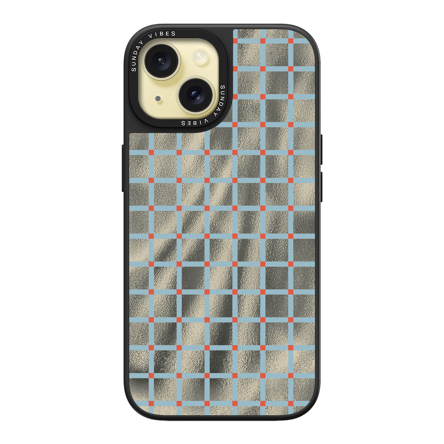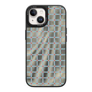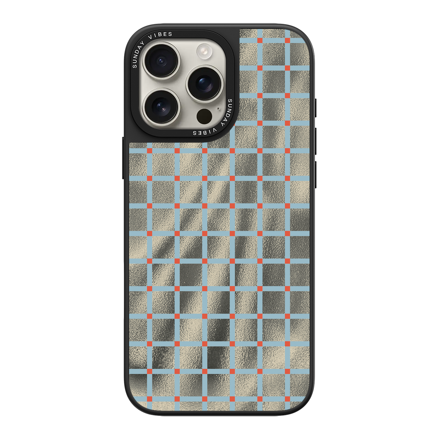 Make a sharp statement with the Cyber Net iPhone Case. This geometric pattern features a striking windowpane grid over a dramatically textured, light-shifting holographic background. The cool blue and orange accents add a modern edge to the metallic gold finish, ensuring a unique, stylish aesthetic.