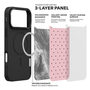 This slim and lightweight protective phone case delivers robust daily protection without the bulk. Its full shockproof construction includes raised camera and front bumpers, offering comprehensive screen and lens protection. The comfortable design is built for effortless handling, and the quality is preserved by its 3-layer back panel system (base layer for protection, ultra HD print, and velvet smooth anti-scratch/anti-fingerprint coating). For MagSafe version cases, an invisible built-in MagSafe function is seamlessly included.