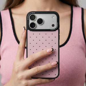 Make a captivating and sweet statement with the Doll Face iPhone Case. This classic black and pink polka dot pattern is timeless, providing an effortlessly cute and feminine aesthetic. This reliable style is perfect for those who favour a clean, confident look.