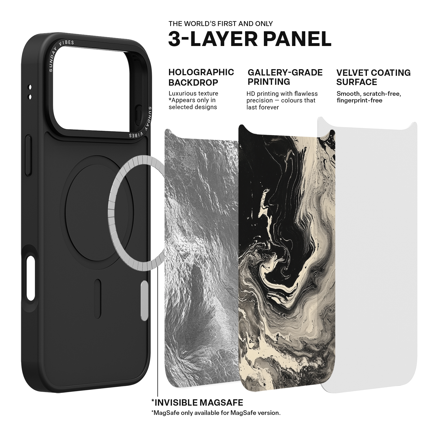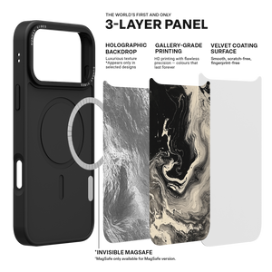 Our globally pioneering three‑layer back panel technology combines: Laser‑textured base layer – adds depth and dimensionality to the design (effects may vary depending on artwork). Ultra‑high‑definition gallery‑grade print layer – delivers vivid, lifelike colours and striking detail. Velvet skin‑feel protective coating – provides scratch resistance and fingerprint protection while offering a soft, refined touch.