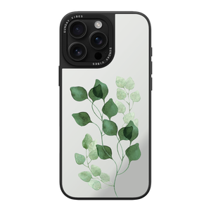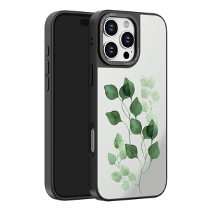 Elevate your look with the tranquil, artistic beauty of the Eucalyptus Dream iPhone Case. The pattern showcases translucent green eucalyptus leaves floating against the high-shine reflective silver backdrop, creating a dazzling, instantly calming accessory. This design perfectly merges a natural, elegant aesthetic with essential mirror convenience.
