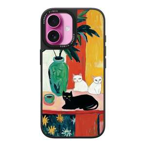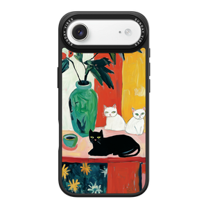 Adorn your device with the bold, quirky charm of the Feline Artistry iPhone Case. This exquisite design captures an expressive, painted scene featuring high-contrast black and white cats set against striking colour blocks of red and yellow. The visible brushstrokes and vivid composition transform your phone into a unique, wearable statement piece that celebrates artistic freedom. The core aesthetic integrity is preserved by the case's premium 3-layer back panel: a base layer for protection, a middle ultra HD gallery print layer for precise detail, and a velvet smooth anti-scratch and anti-fingerprint top coating.