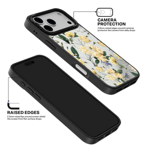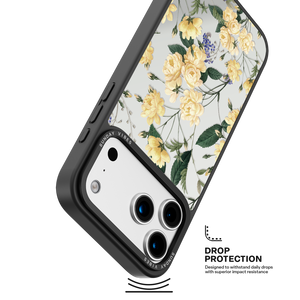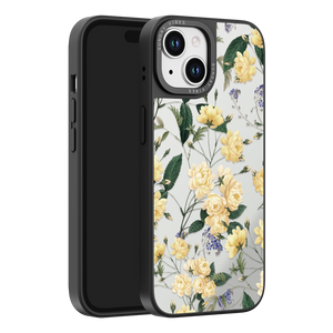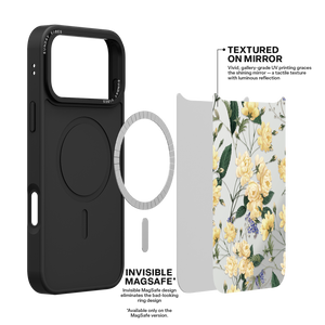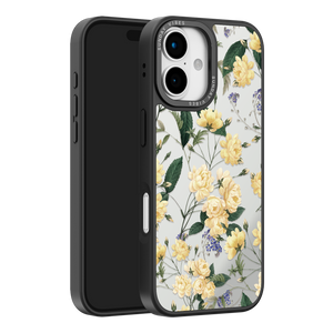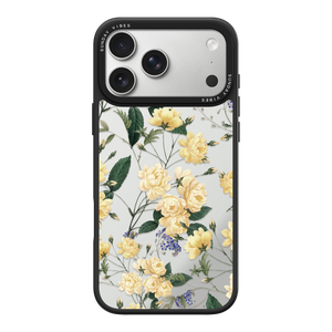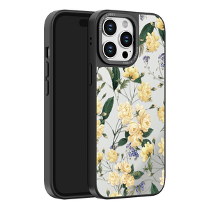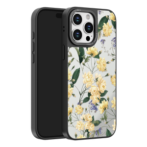 Adorn your device with the intricate, luminous beauty of the Golden Petalcode iPhone Case. This exquisite design showcases a detailed botanical illustration of soft yellow roses and lush green vines, all set against the highly reflective, functional mirror backing. This poetic, high-style aesthetic ensures you are always ready for a quick style check or selfie, merging classic artistry with essential convenience. The vibrant print and texture are applied directly onto the mirror surface for maximum visual impact.