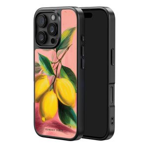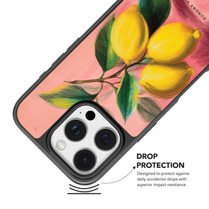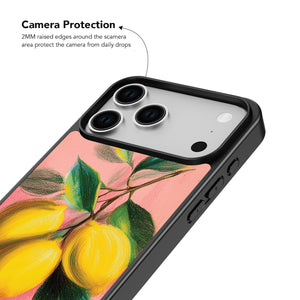 Infuse your iPhone with a burst of citrusy charm using the Lemon Reverie iPhone Case. The case features a delightful pastel - pink backdrop adorned with a hand - drawn illustration of ripe, vibrant lemons still attached to their leafy branches. The soft texture and vivid colors of the artwork create a warm, inviting aesthetic. With shock - absorbent edges, it offers reliable protection against daily bumps and scrapes. Its slim profile ensures easy handling and portability, making it a perfect accessory for those who love a blend of artistic flair and practical device protection.