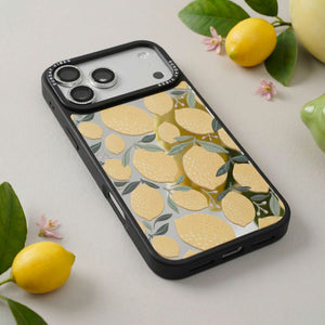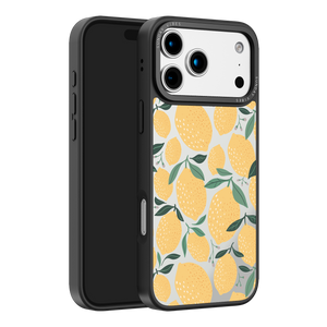 Adorn your device with the pure, vibrant freshness of the Lemon Zest iPhone Case. This striking design showcases a cheerful pattern of sunny yellow lemons and bold green foliage, set against the highly reflective, functional mirror backing. This fresh, energetic aesthetic ensures you are always ready for a quick style check or selfie. The vibrant print and texture are applied directly onto the mirror surface for maximum visual impact.