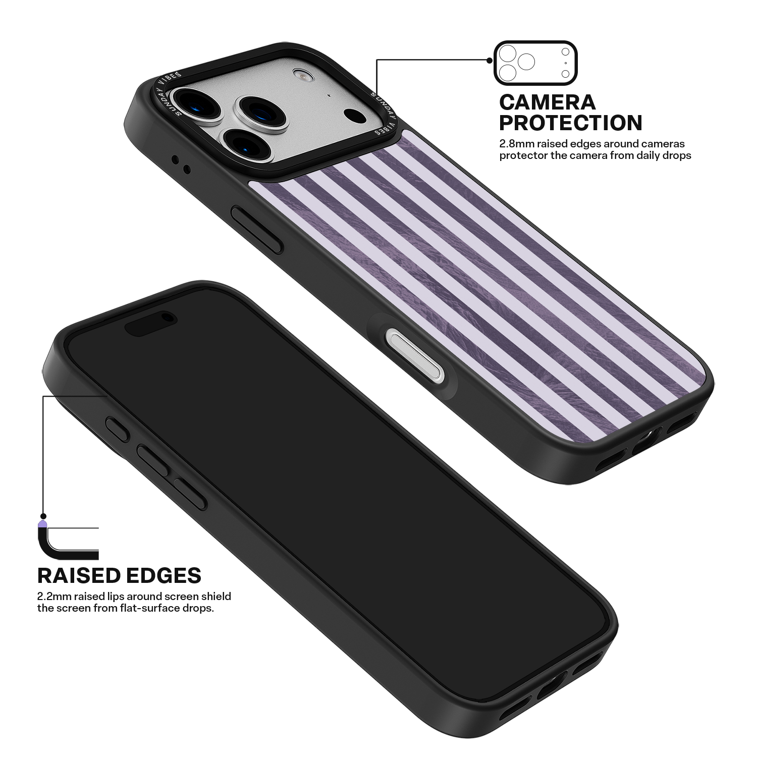 Engineered with a robust camera ring in a raised design, this protective structure shields your camera from impacts. The three-dimensional surround elevates the protruding lens by approximately 2.4mm, while the durable materials ensure reliable protection against accidental drops.
