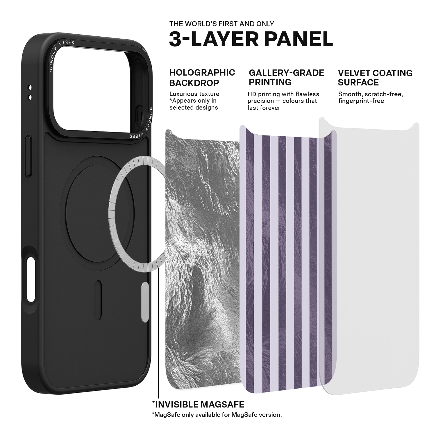 Our globally pioneering three‑layer back panel technology combines: