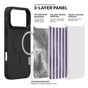Capture a moment of ethereal light with the Lilac Dream iPhone Case. This exquisite design translates poetic femininity into structure, featuring bold vertical bands where soft, matte lavender alternates with a deep, molten purple stripe that shimmers with a fluid holographic texture. This captivating interplay of veiled colour and dynamic metallic depth creates a truly luxurious and unique aesthetic. The core integrity of this beautiful accessory is built on a premium 3-layer back panel construction: featuring a base holographic layer with texture, an ultra HD gallery print layer for vivid colour retention, and a velvet smooth anti-scratch and anti-fingerprint top coating.