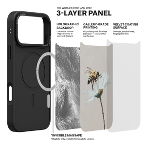Our globally pioneering three‑layer back panel technology combines: Laser‑textured base layer – adds depth and dimensionality to the design (effects may vary depending on artwork). Ultra‑high‑definition gallery‑grade print layer – delivers vivid, lifelike colours and striking detail. Velvet skin‑feel protective coating – provides scratch resistance and fingerprint protection while offering a soft, refined touch.