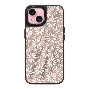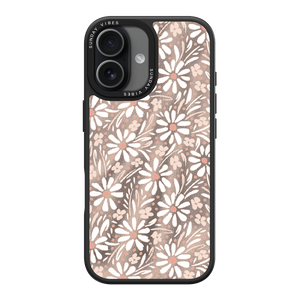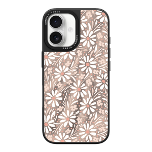 Discover the soft beauty of the Meadow Shimmer iPhone Case. This intricate design features a dense, vintage-style floral pattern of white daisies and delicate foliage, set against a warm, muted background that glows with a subtle holographic shimmer. This unique blend of cozy aesthetic and light-shifting texture creates a truly enchanting style. The case is built with a premium 3-layer back panel: a base holographic layer with texture, a middle ultra HD gallery print layer, and a velvet smooth anti-scratch and anti-fingerprint top coating.