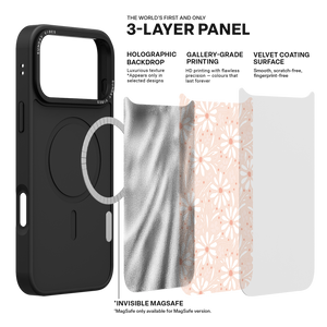 Our globally pioneering three‑layer back panel technology combines: Laser‑textured base layer – adds depth and dimensionality to the design (effects may vary depending on artwork). Ultra‑high‑definition gallery‑grade print layer – delivers vivid, lifelike colours and striking detail. Velvet skin‑feel protective coating – provides scratch resistance and fingerprint protection while offering a soft, refined touch.