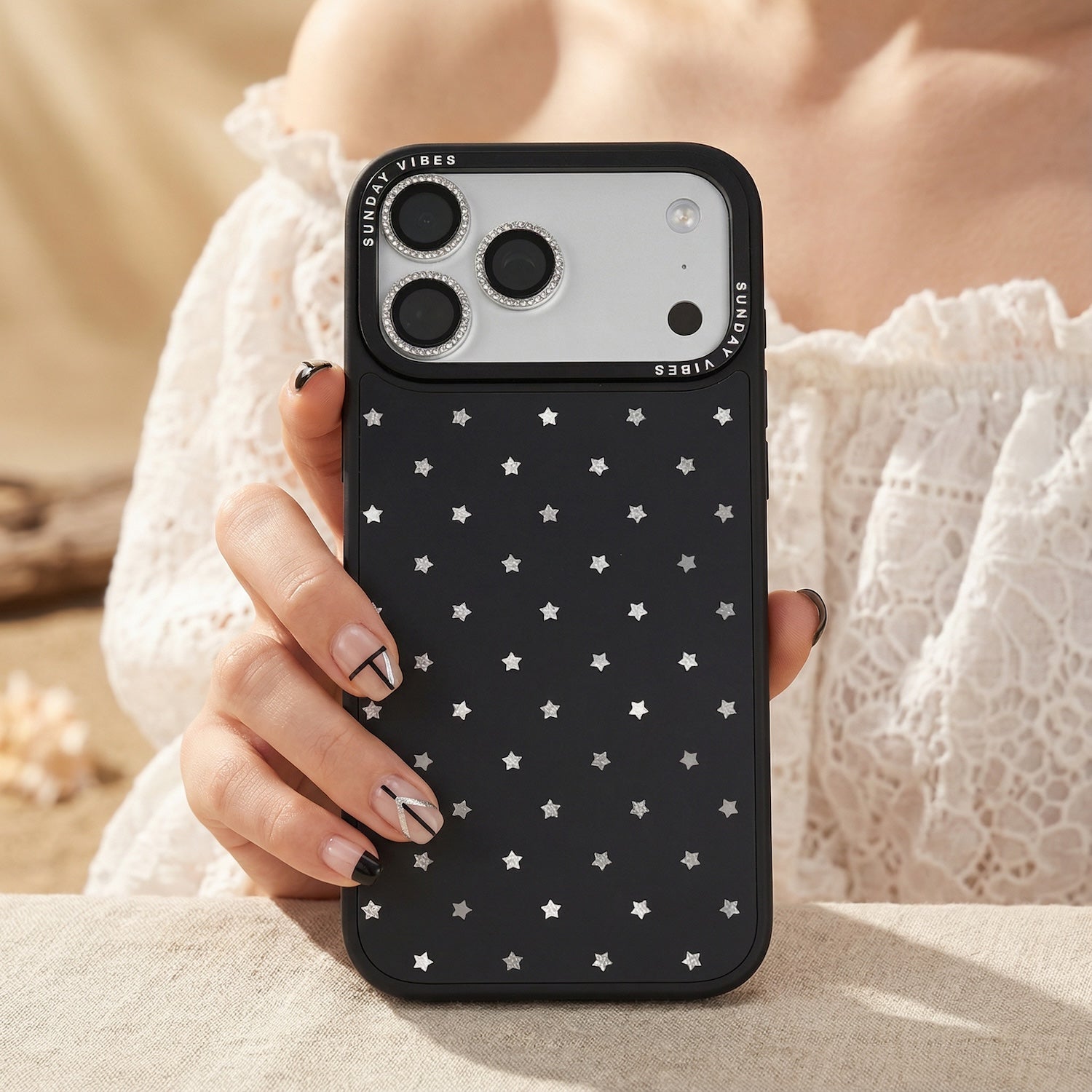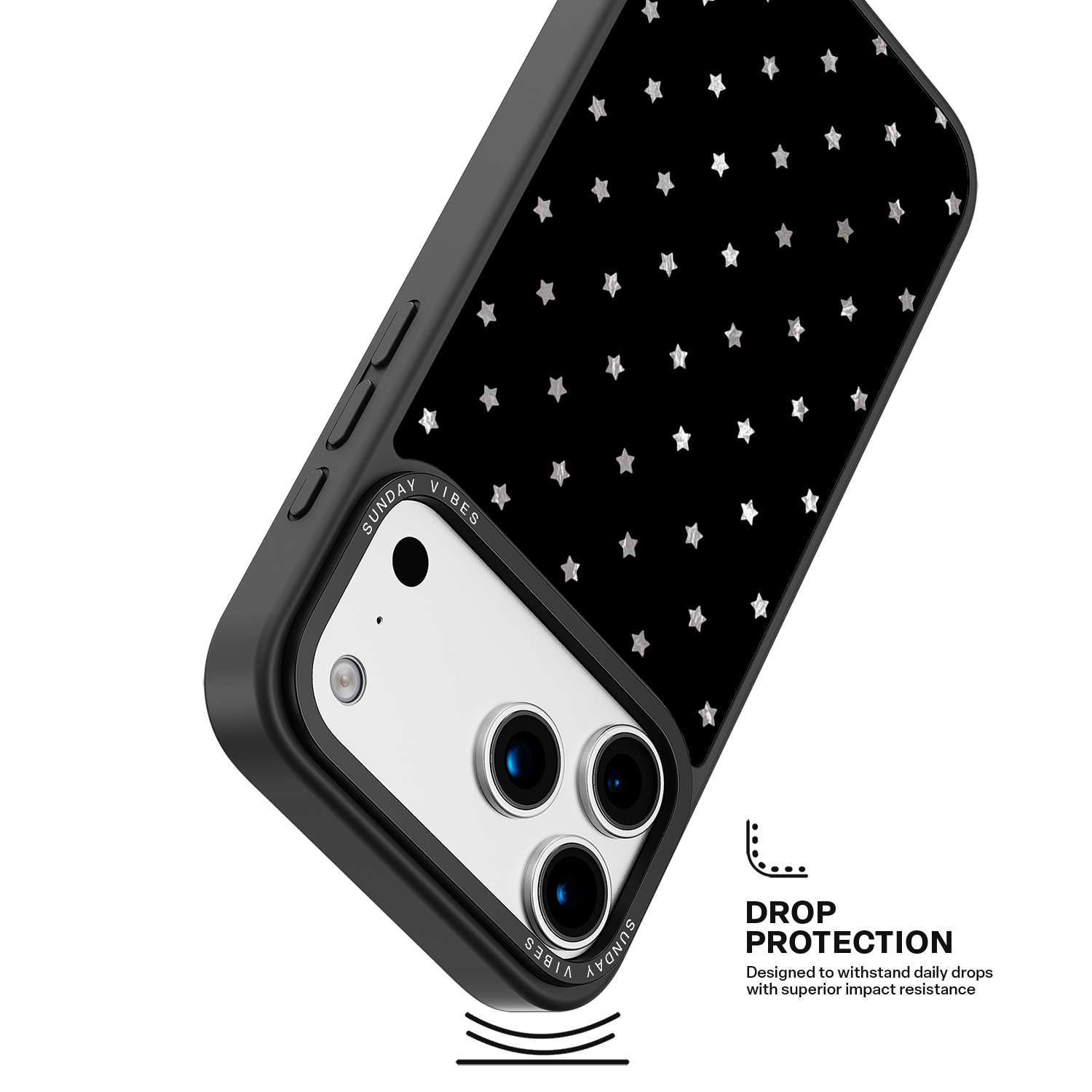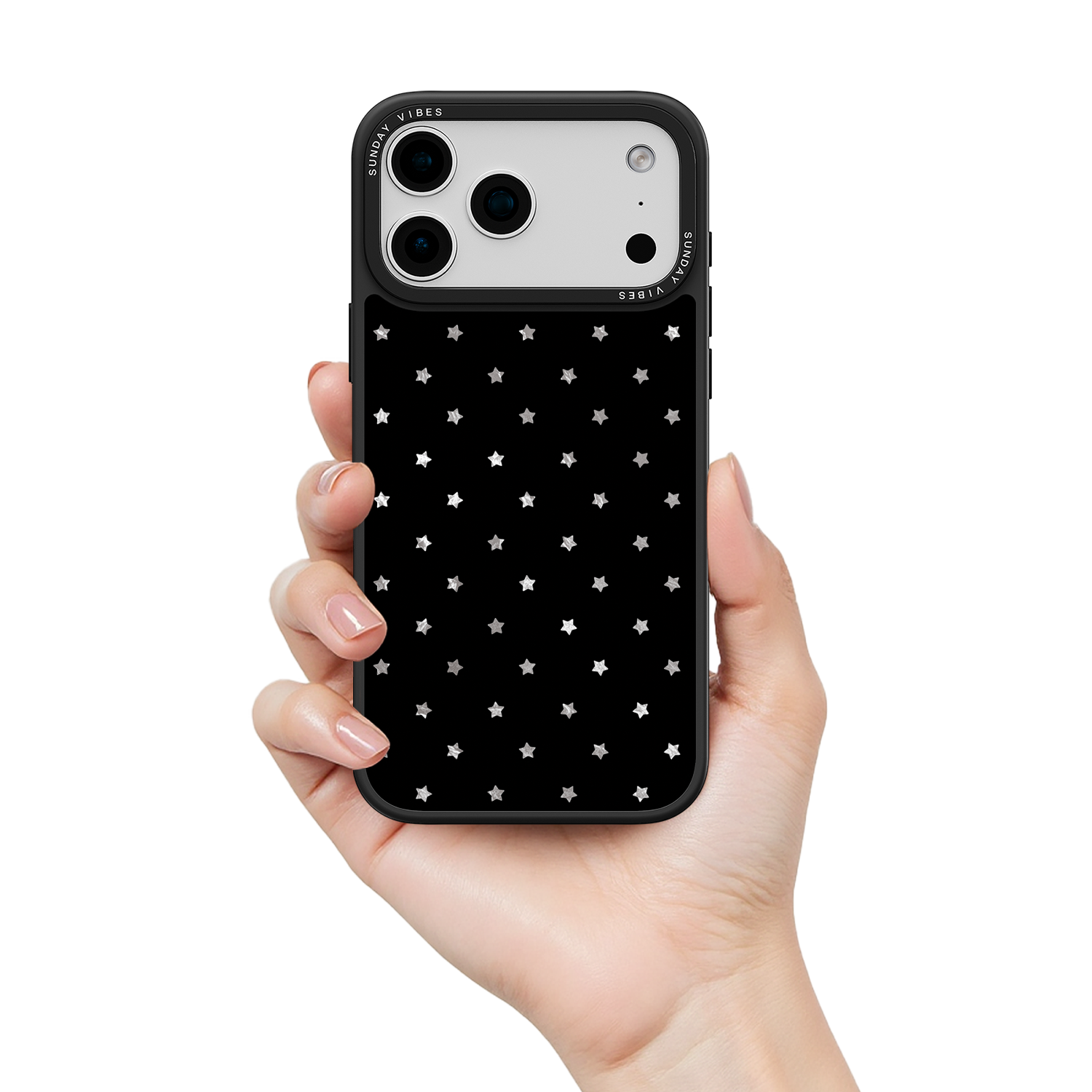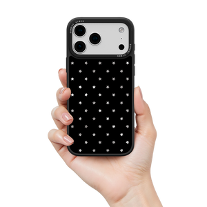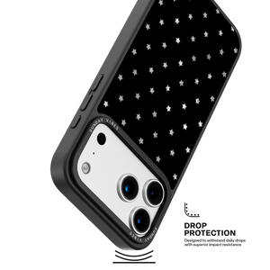 Elevate your look with the subtle glamour of the Midnight Shine iPhone Case. The deep black canvas provides the perfect contrast for the uniform pattern of shimmering, light-shifting holographic stars. This beautiful, minimalist design makes a sophisticated statement that works perfectly for both day and night.