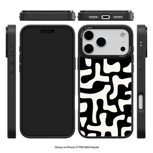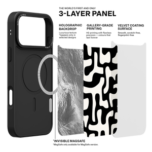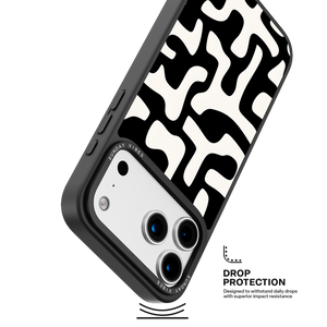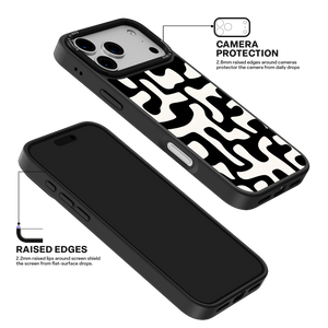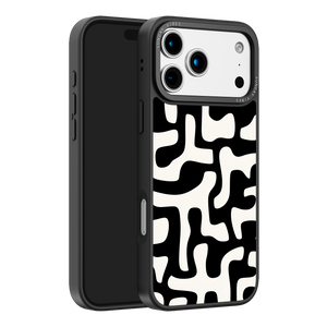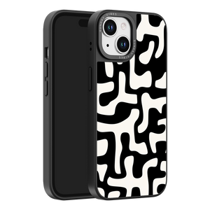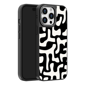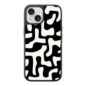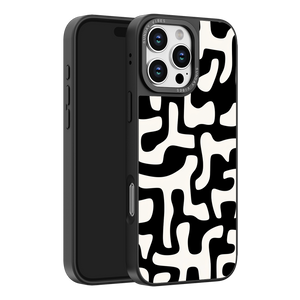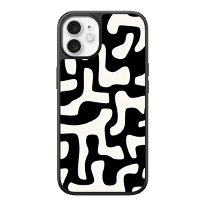 Adorn your device with the bold, graphic style of the Monochrome Moo iPhone Case. This striking design showcases an abstract, high-contrast pattern of intertwining black and cream shapes, nodding cleverly to a modern cow print aesthetic. The clean lines and strong contrast transform your phone into an instantly quirky and stylish accessory. The core aesthetic integrity is preserved by the case's premium 3-layer back panel: a base layer for protection, a middle ultra HD gallery print layer for precise detail, and a velvet smooth anti-scratch and anti-fingerprint top coating.