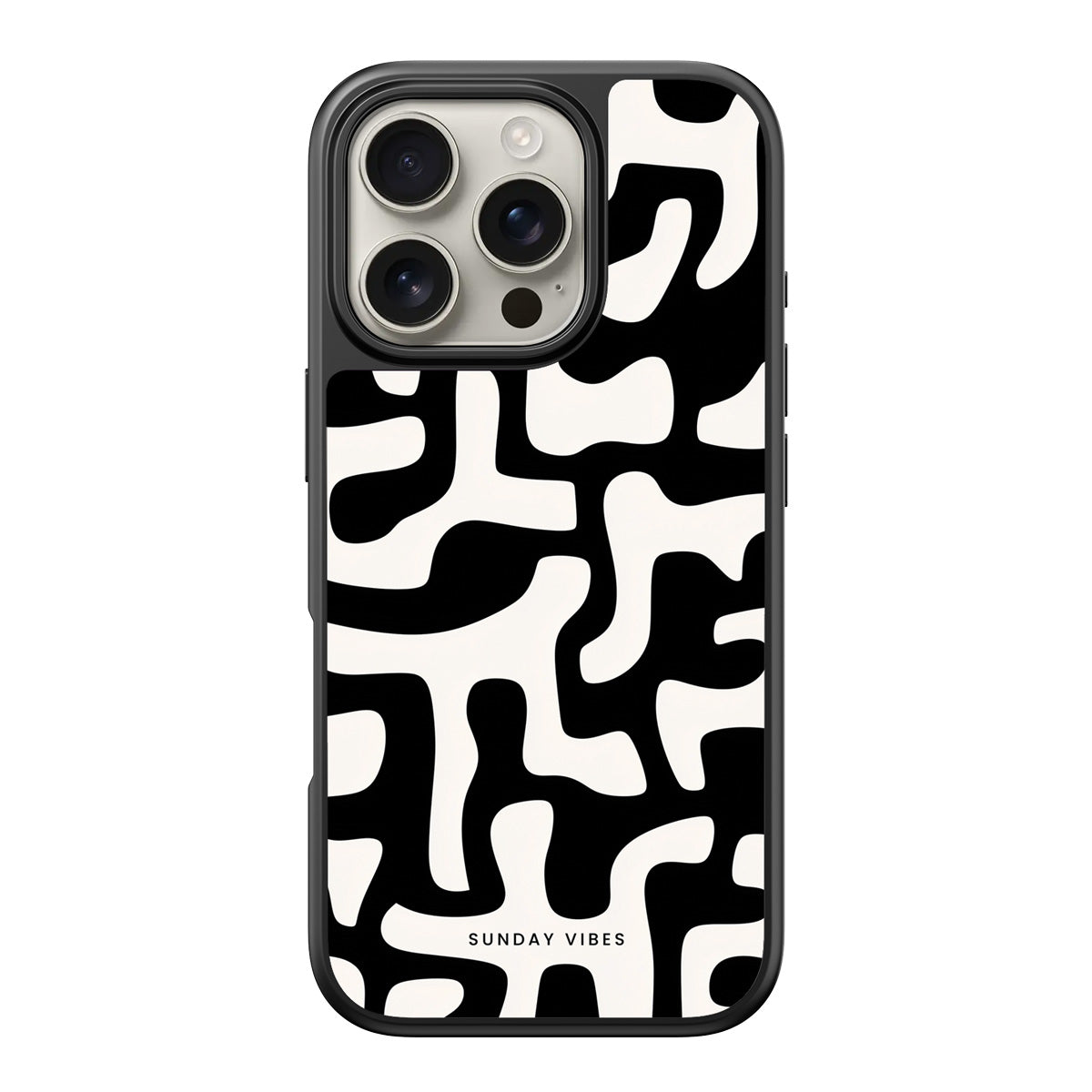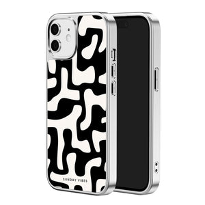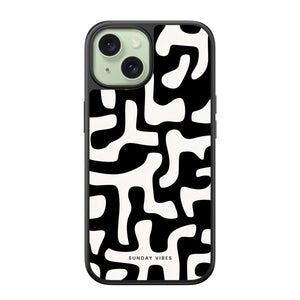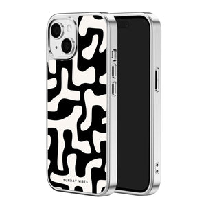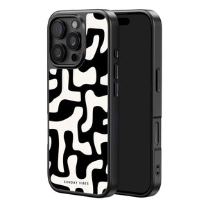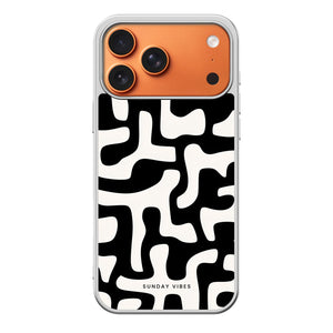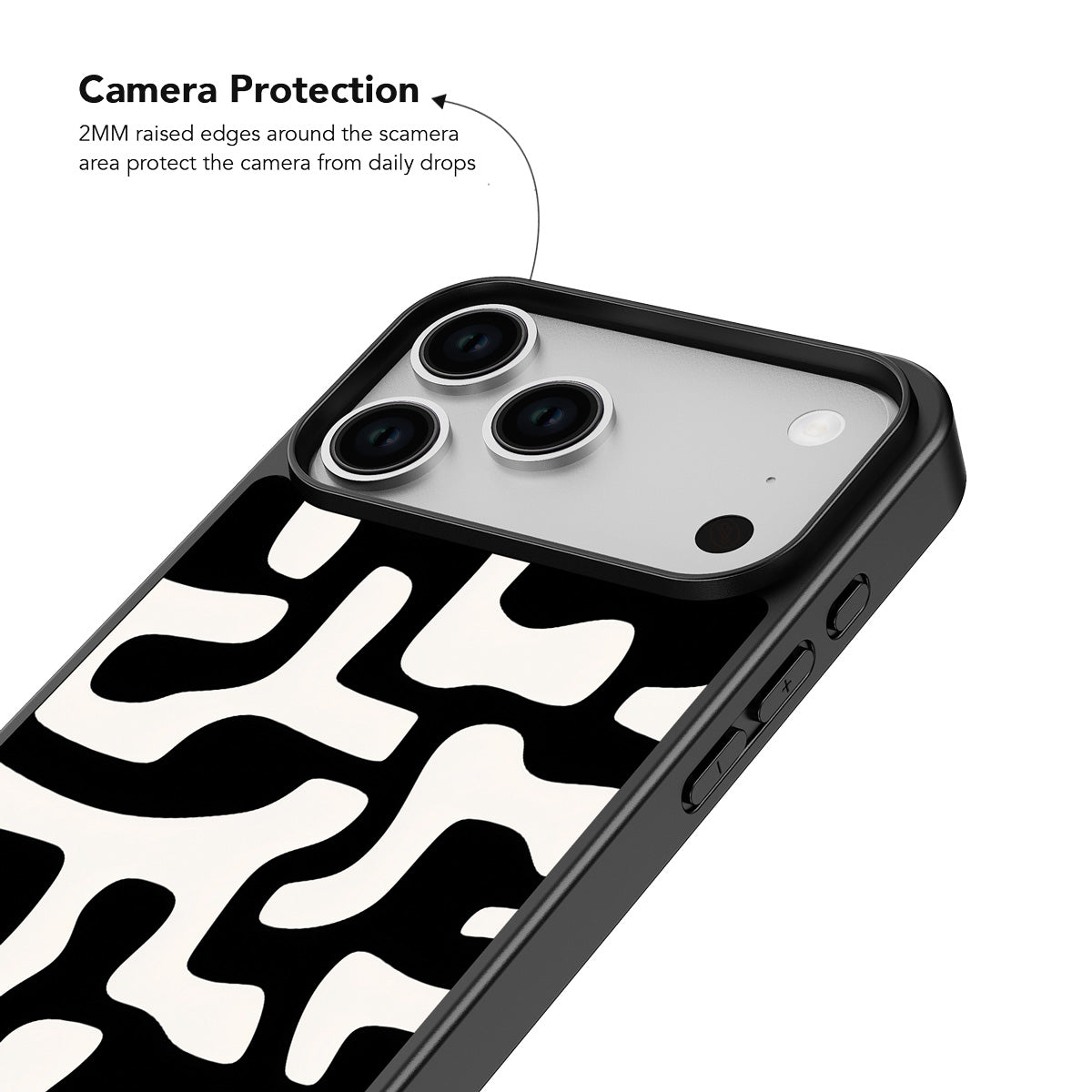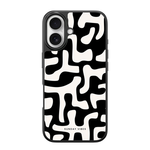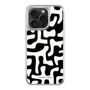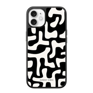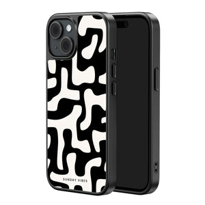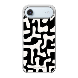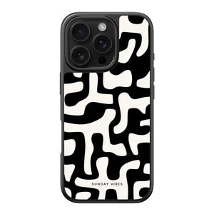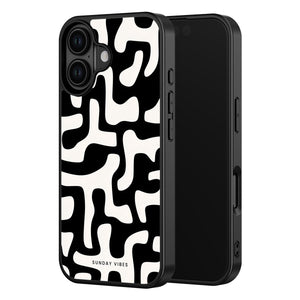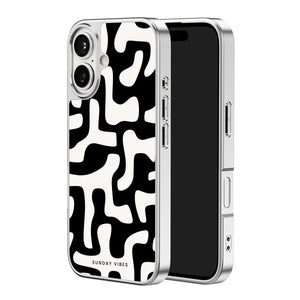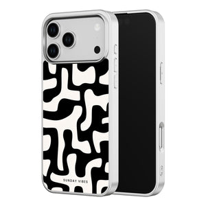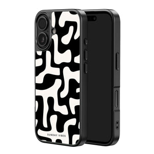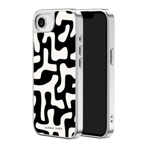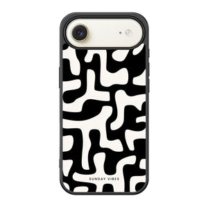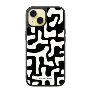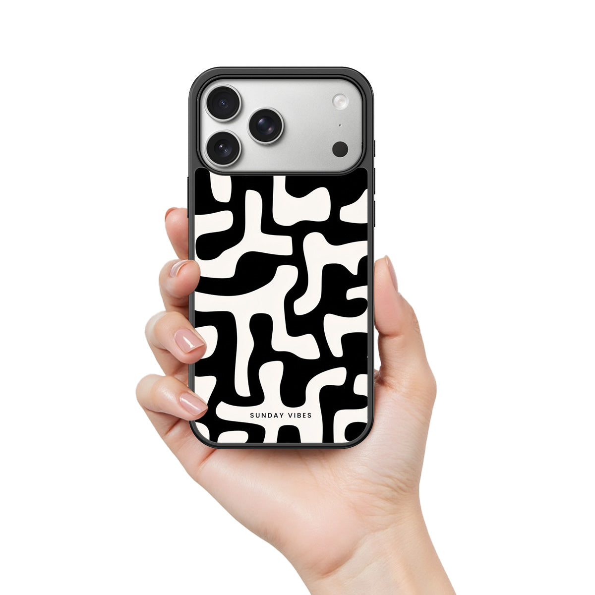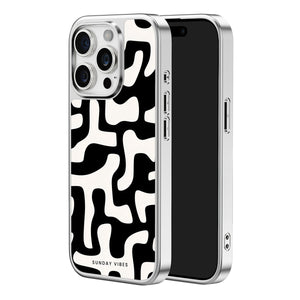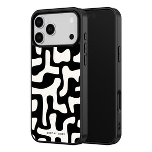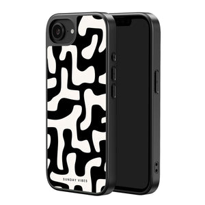 Make a bold style statement with the Monochrome Moo iPhone Case. Its surface features a striking black and white pattern reminiscent of a cow print, but with a modern, abstract twist. The high - contrast design is both eye - catching and stylish, exuding a contemporary vibe. Constructed with shock - absorbent edges, it offers reliable protection against daily impacts. The case's slim profile ensures easy portability, making it a perfect accessory for those who love to flaunt a unique, trendy look.