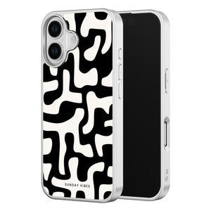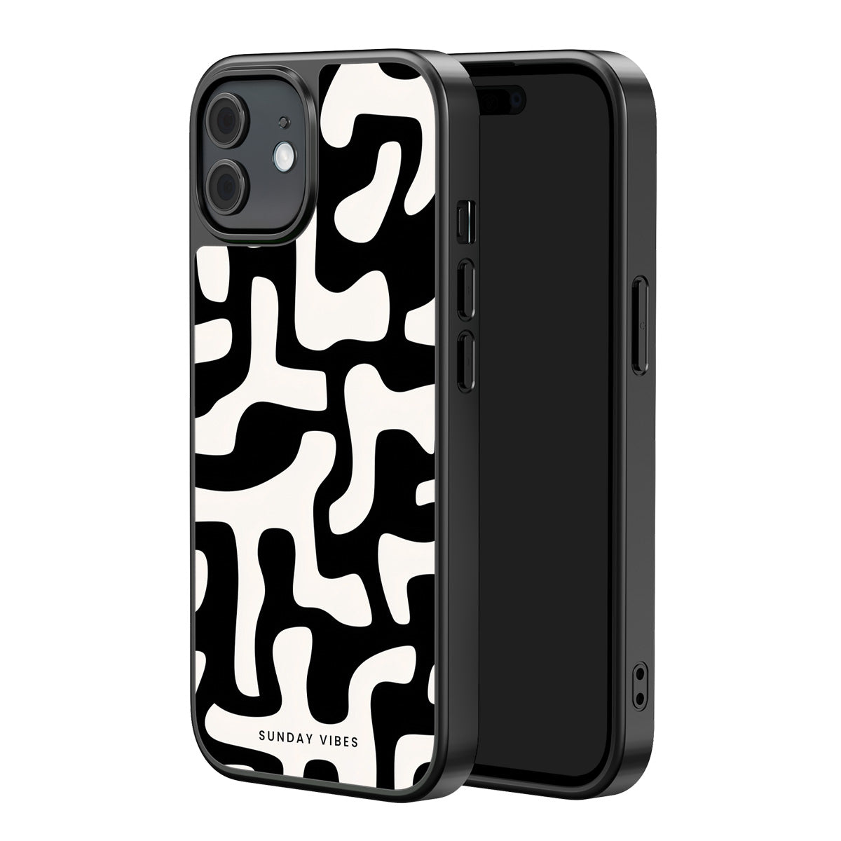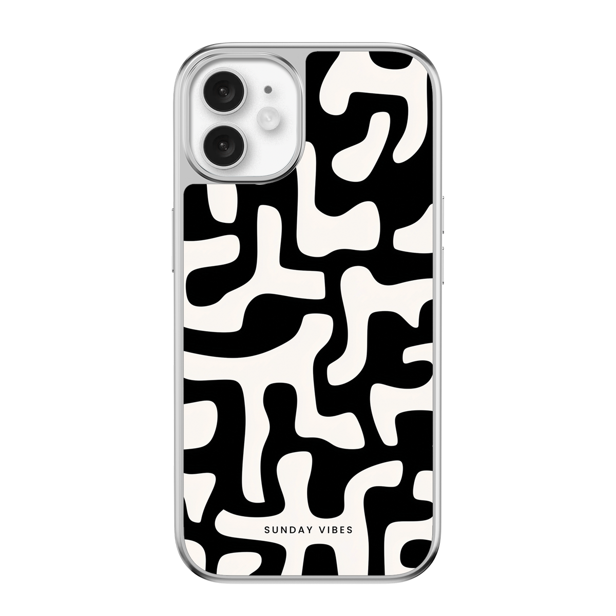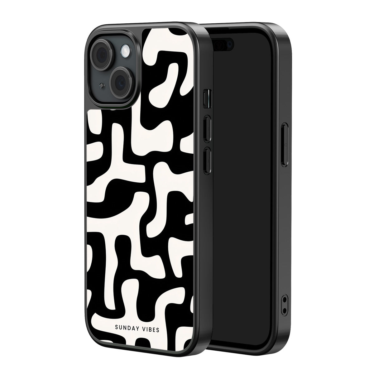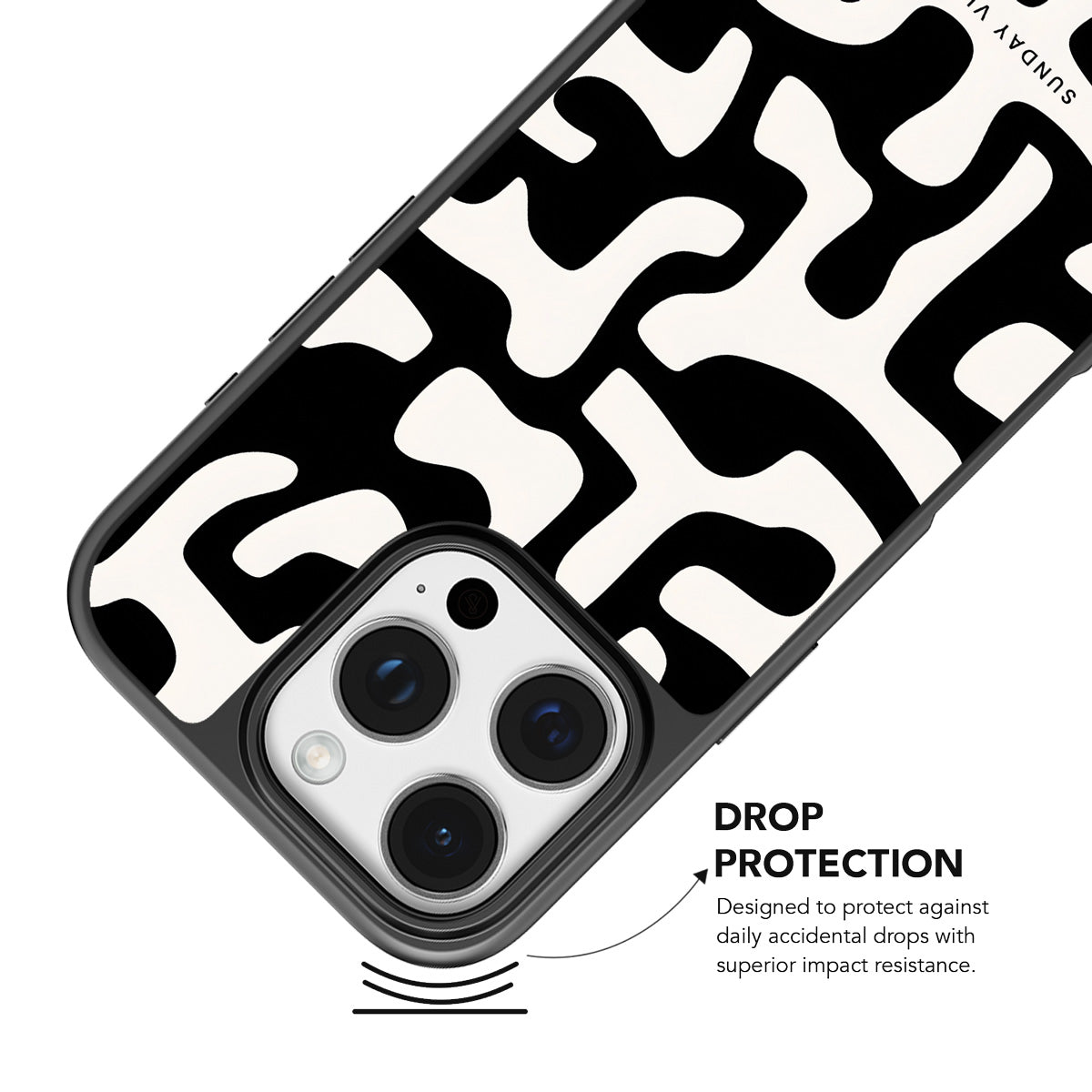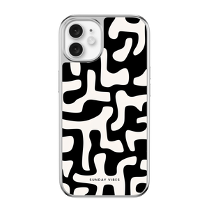Make a bold style statement with the Monochrome Moo iPhone Case. Its surface features a striking black and white pattern reminiscent of a cow print, but with a modern, abstract twist. The high - contrast design is both eye - catching and stylish, exuding a contemporary vibe. Constructed with shock - absorbent edges, it offers reliable protection against daily impacts. The case's slim profile ensures easy portability, making it a perfect accessory for those who love to flaunt a unique, trendy look.