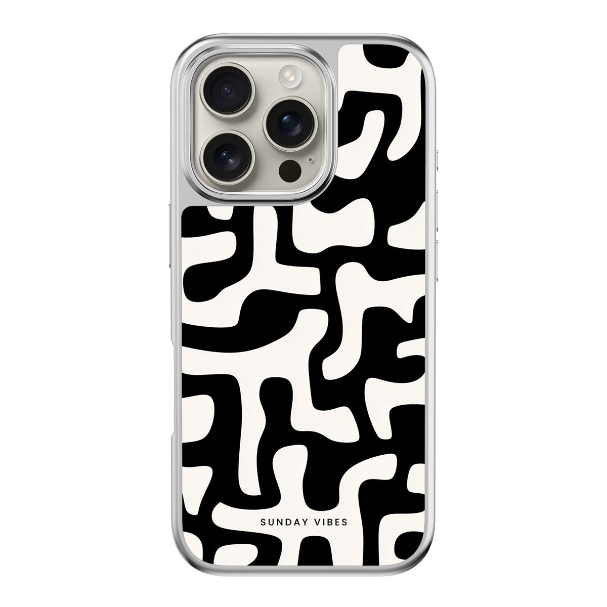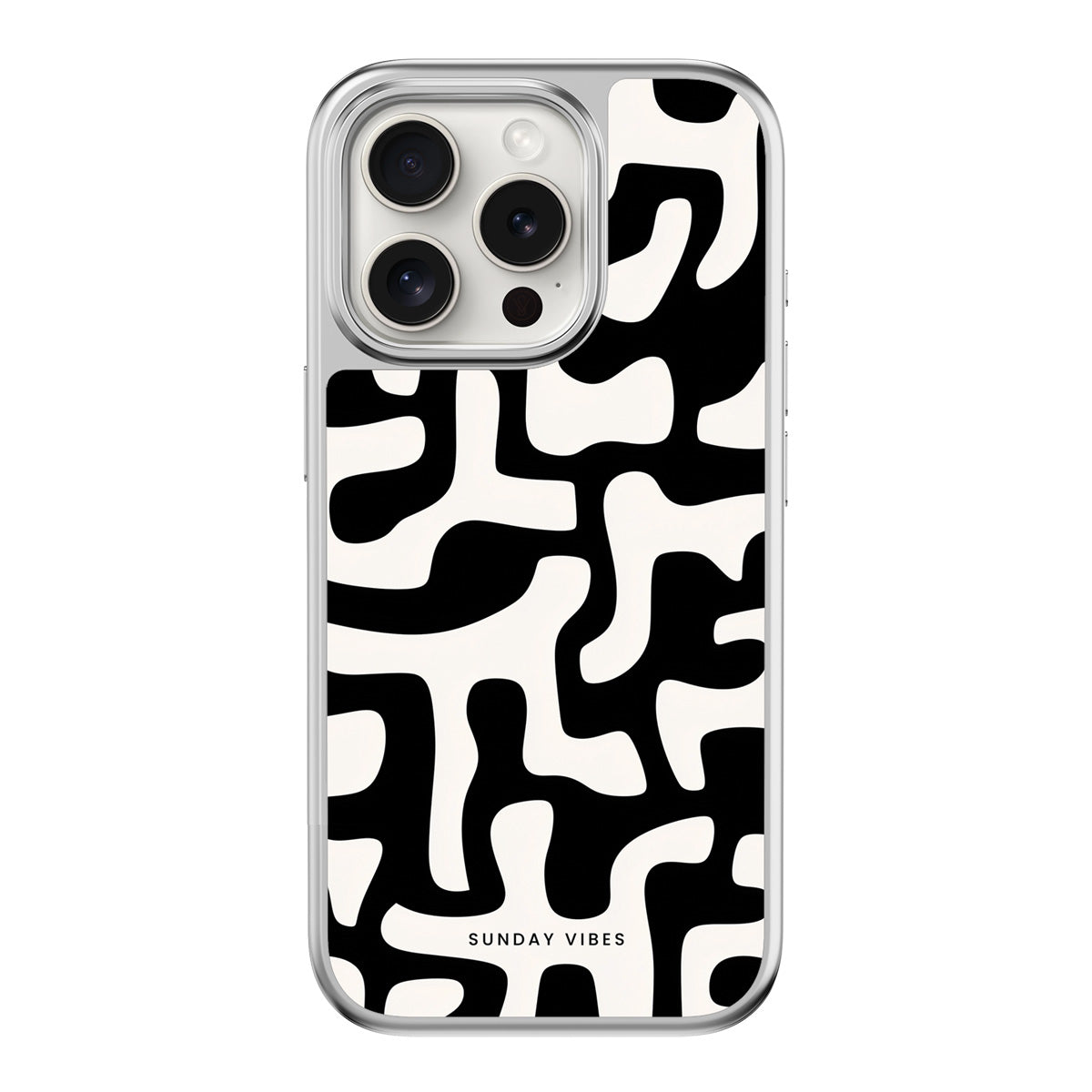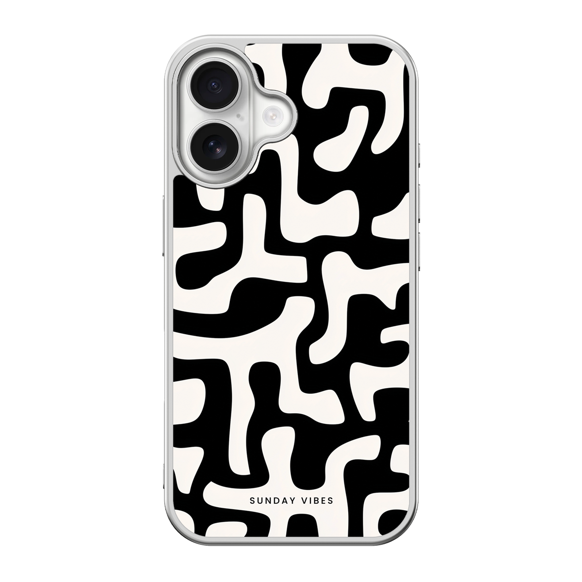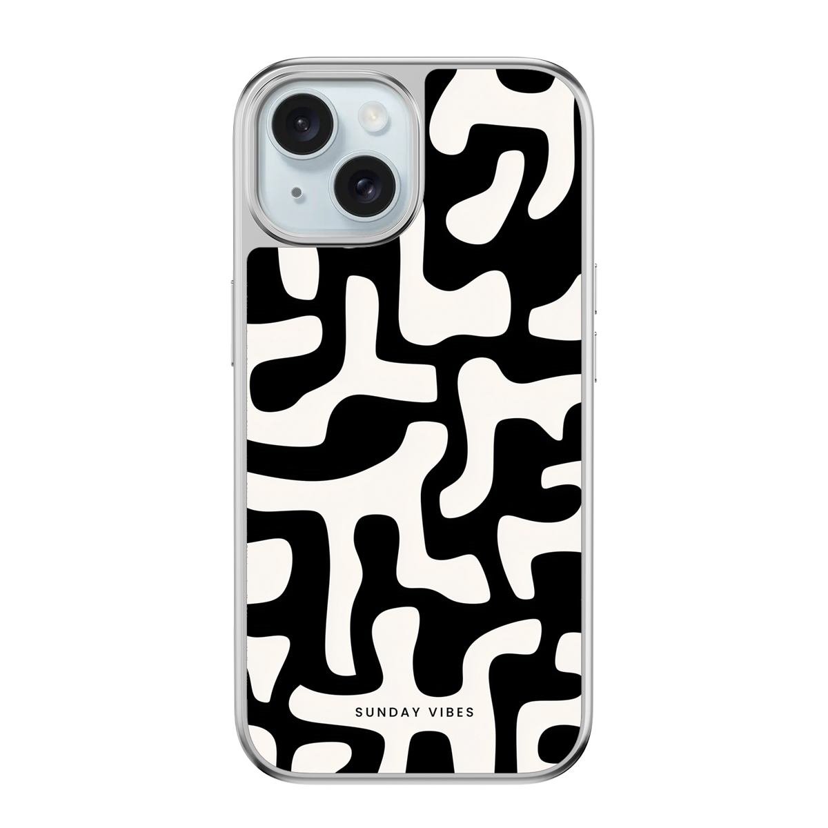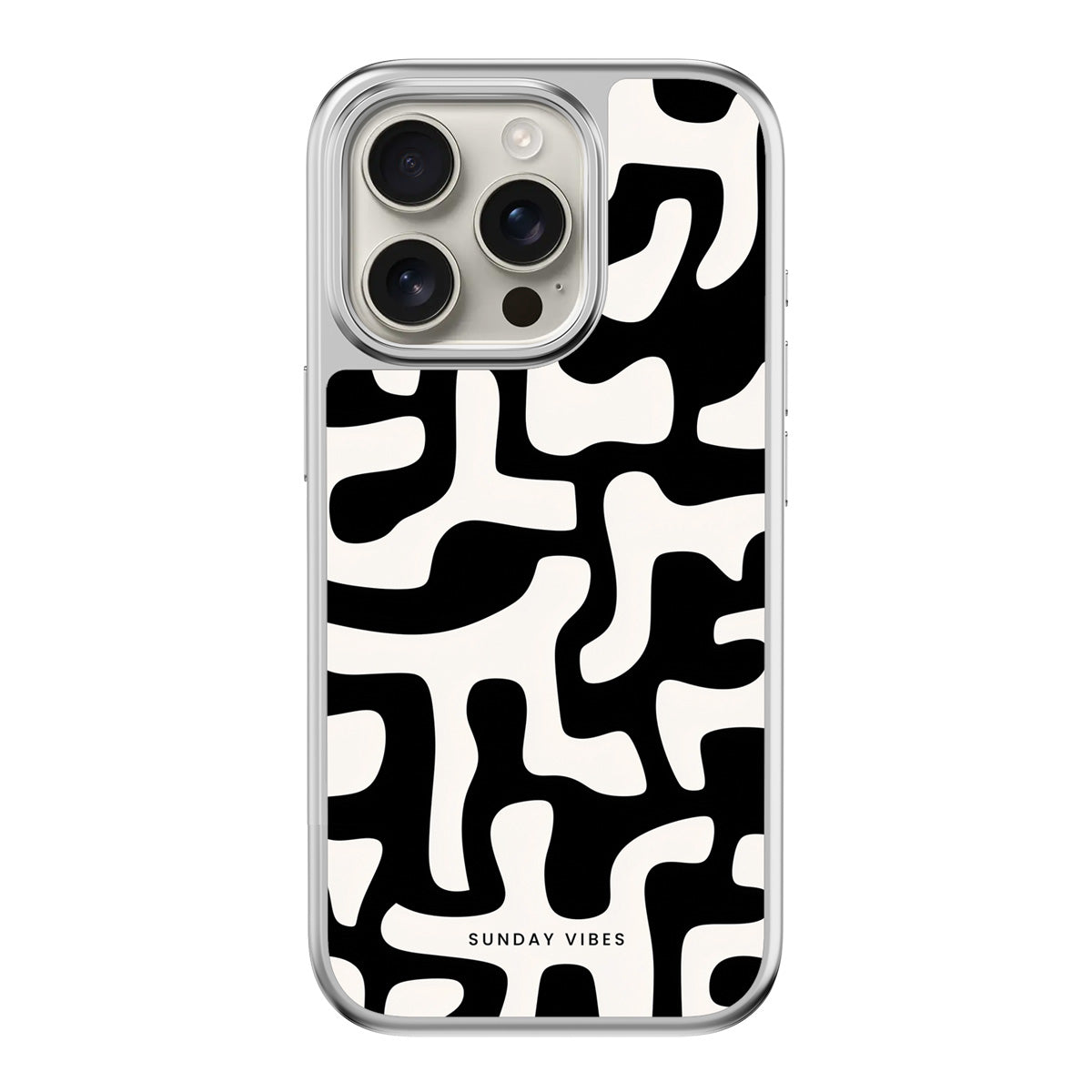 Make a bold style statement with the Monochrome Moo iPhone Case. Its surface features a striking black and white pattern reminiscent of a cow print, but with a modern, abstract twist. The high - contrast design is both eye - catching and stylish, exuding a contemporary vibe. Constructed with shock - absorbent edges, it offers reliable protection against daily impacts. The case's slim profile ensures easy portability, making it a perfect accessory for those who love to flaunt a unique, trendy look.
