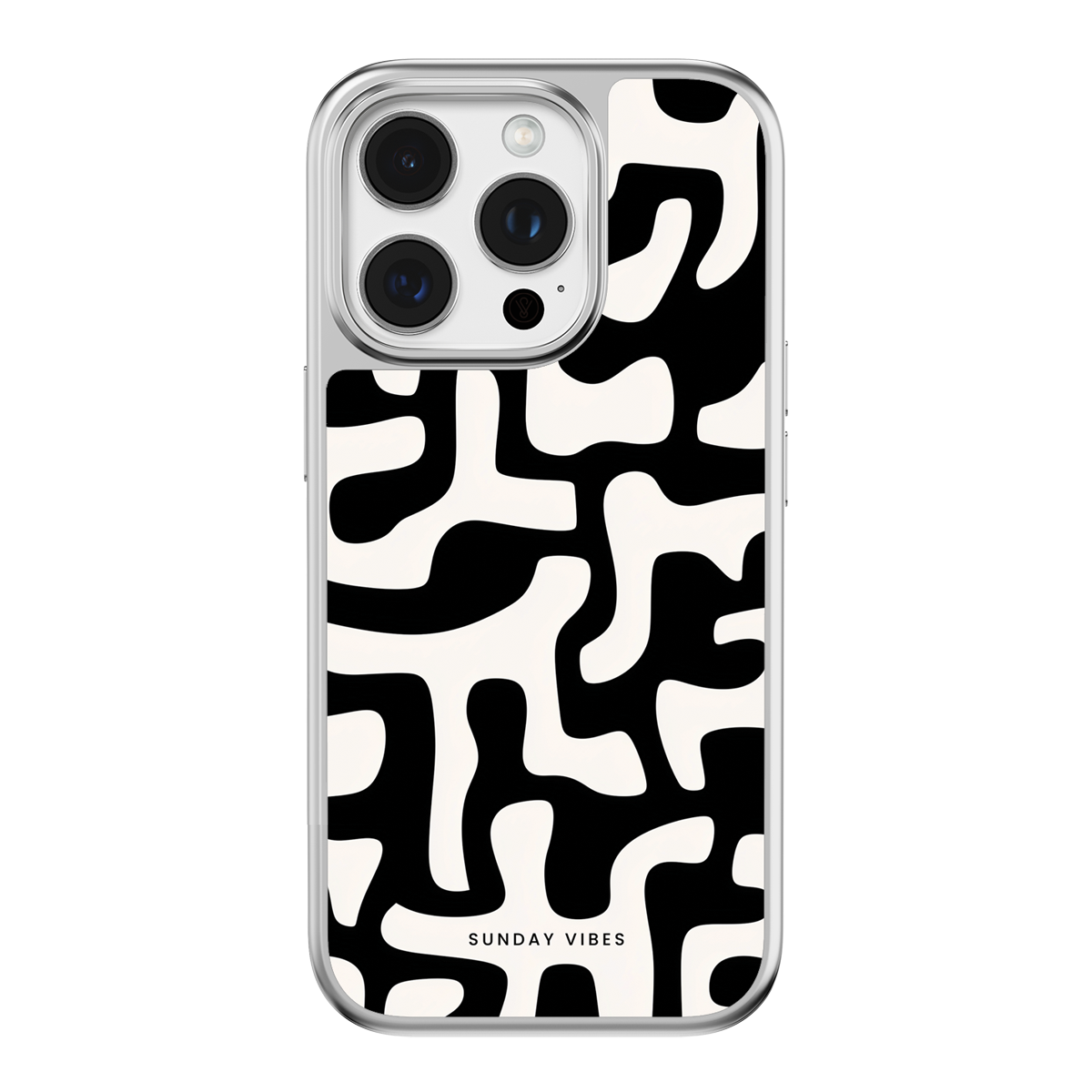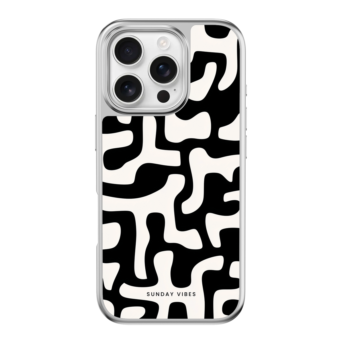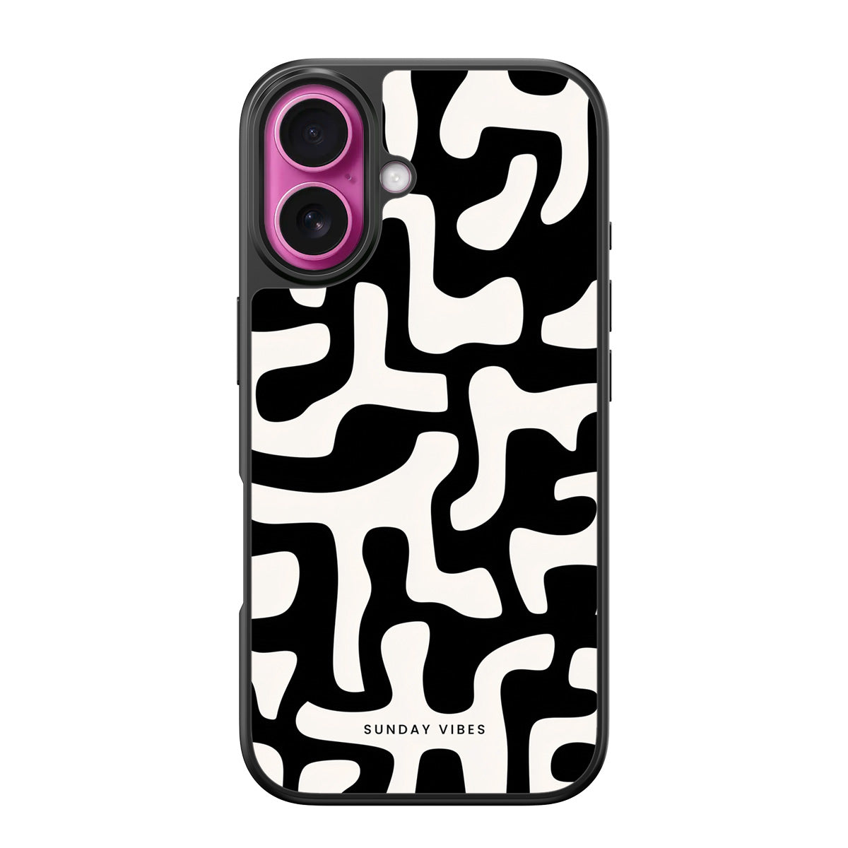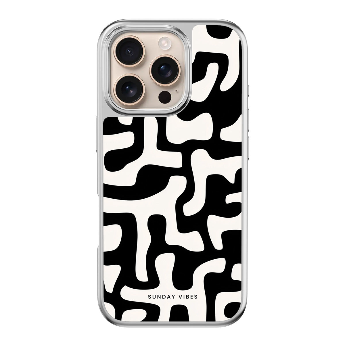 Make a bold style statement with the Monochrome Moo iPhone Case. Its surface features a striking black and white pattern reminiscent of a cow print, but with a modern, abstract twist. The high - contrast design is both eye - catching and stylish, exuding a contemporary vibe. Constructed with shock - absorbent edges, it offers reliable protection against daily impacts. The case's slim profile ensures easy portability, making it a perfect accessory for those who love to flaunt a unique, trendy look.