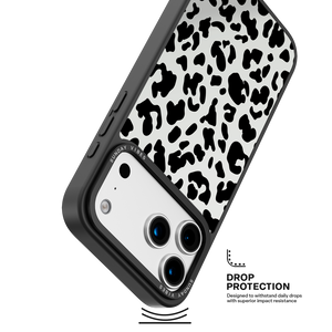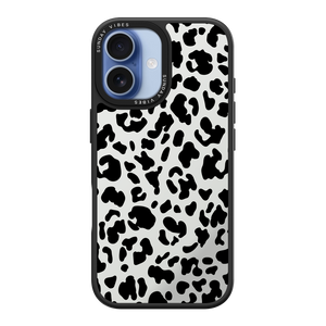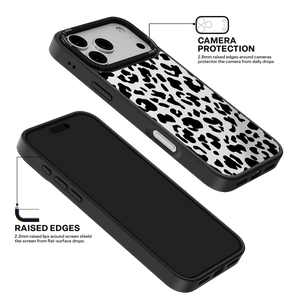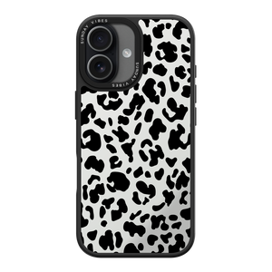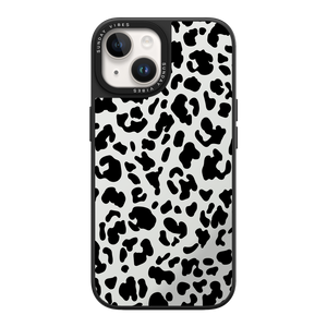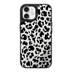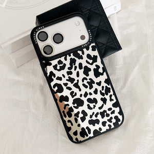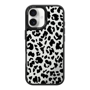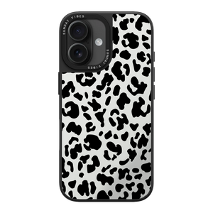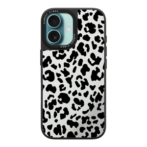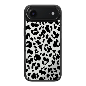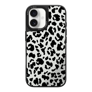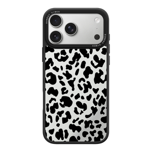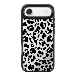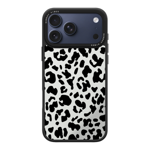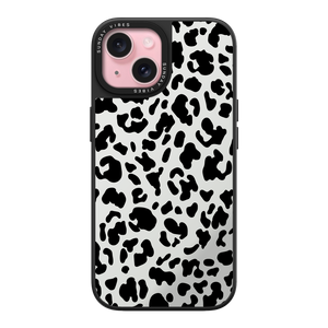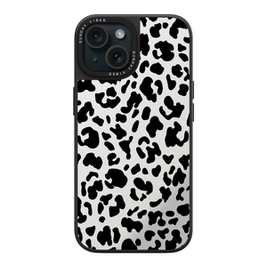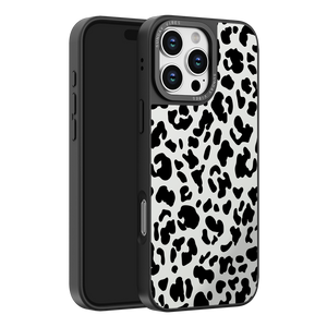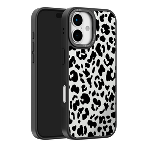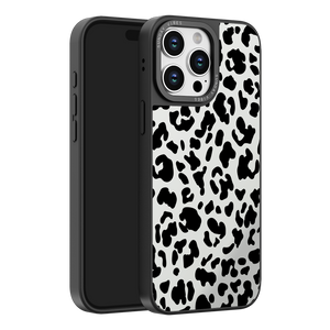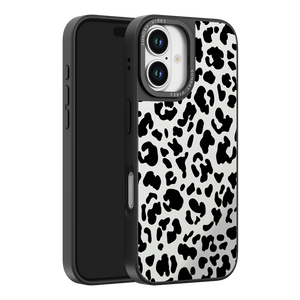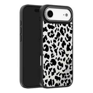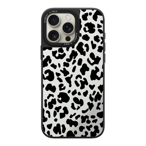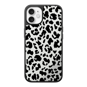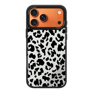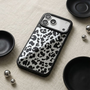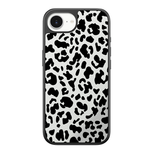 Adorn your device with the bold, quirky glamour of the Moo-dy Chic iPhone Case. This striking design features an abstract black-and-white print reminiscent of cow spots, set against a highly reflective, functional mirror backing. This fun, high-contrast aesthetic ensures you are always ready for a quick style check or selfie. The vibrant print and texture are applied directly onto the mirror surface for maximum visual impact.