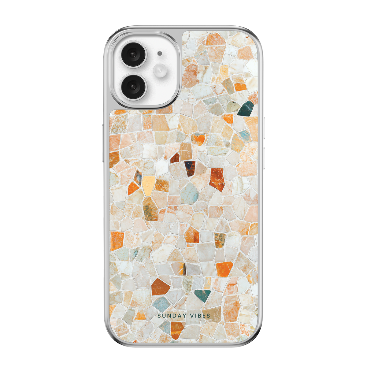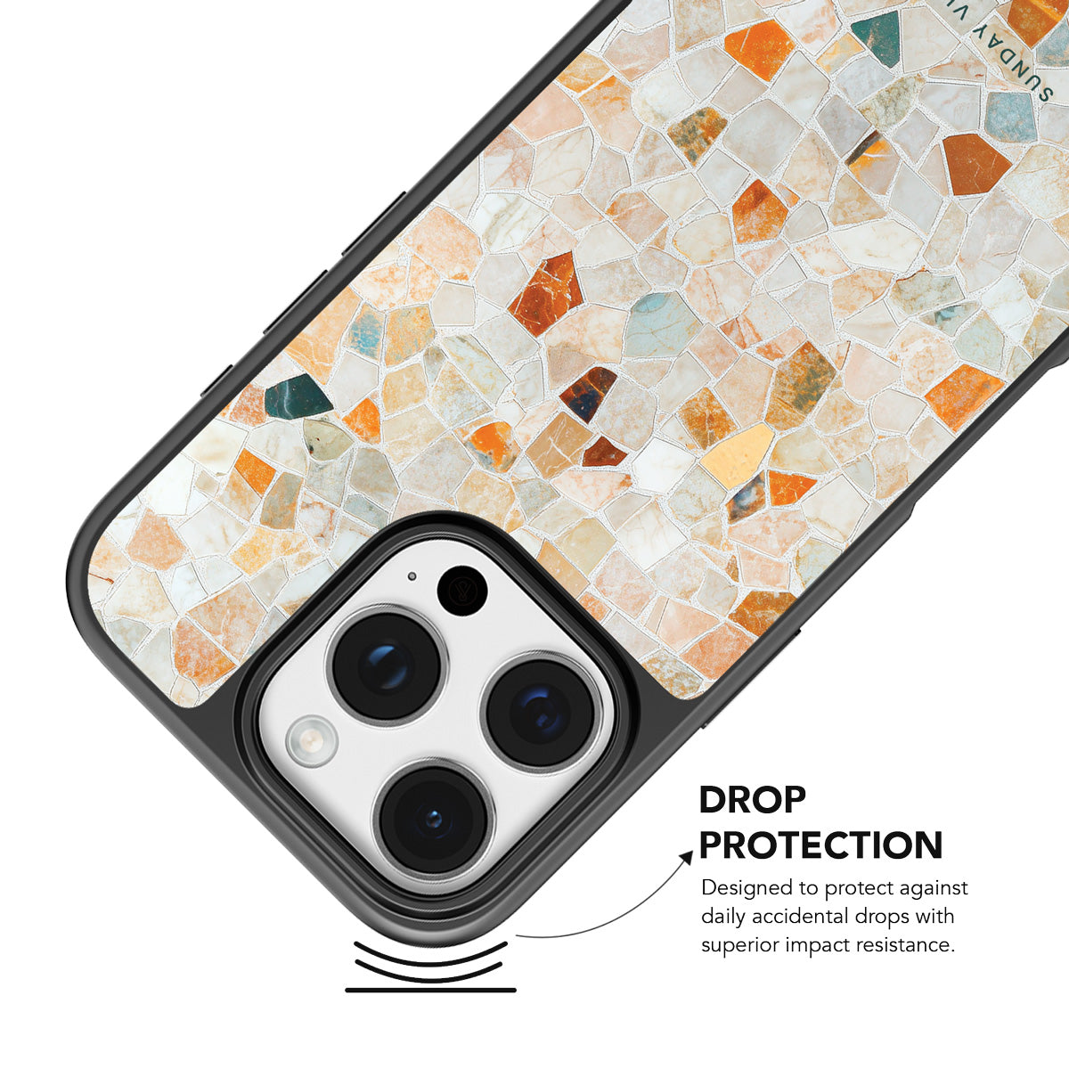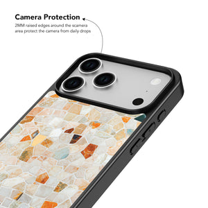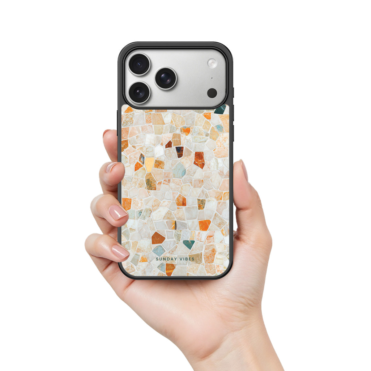 Transform your iPhone with the Mosaic Reverie iPhone Case. Its surface displays a captivating mosaic pattern, composed of an array of multicolored stone - like tiles in shades of beige, orange, and hints of blue and green. The intricate design exudes an air of artisanal craftsmanship and timeless elegance. Constructed with shock - absorbent edges, it offers reliable protection against daily impacts. The case's slim profile ensures easy portability, making it a perfect accessory for those who appreciate a blend of artistic allure and practical safeguarding.