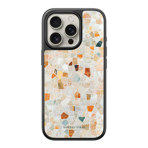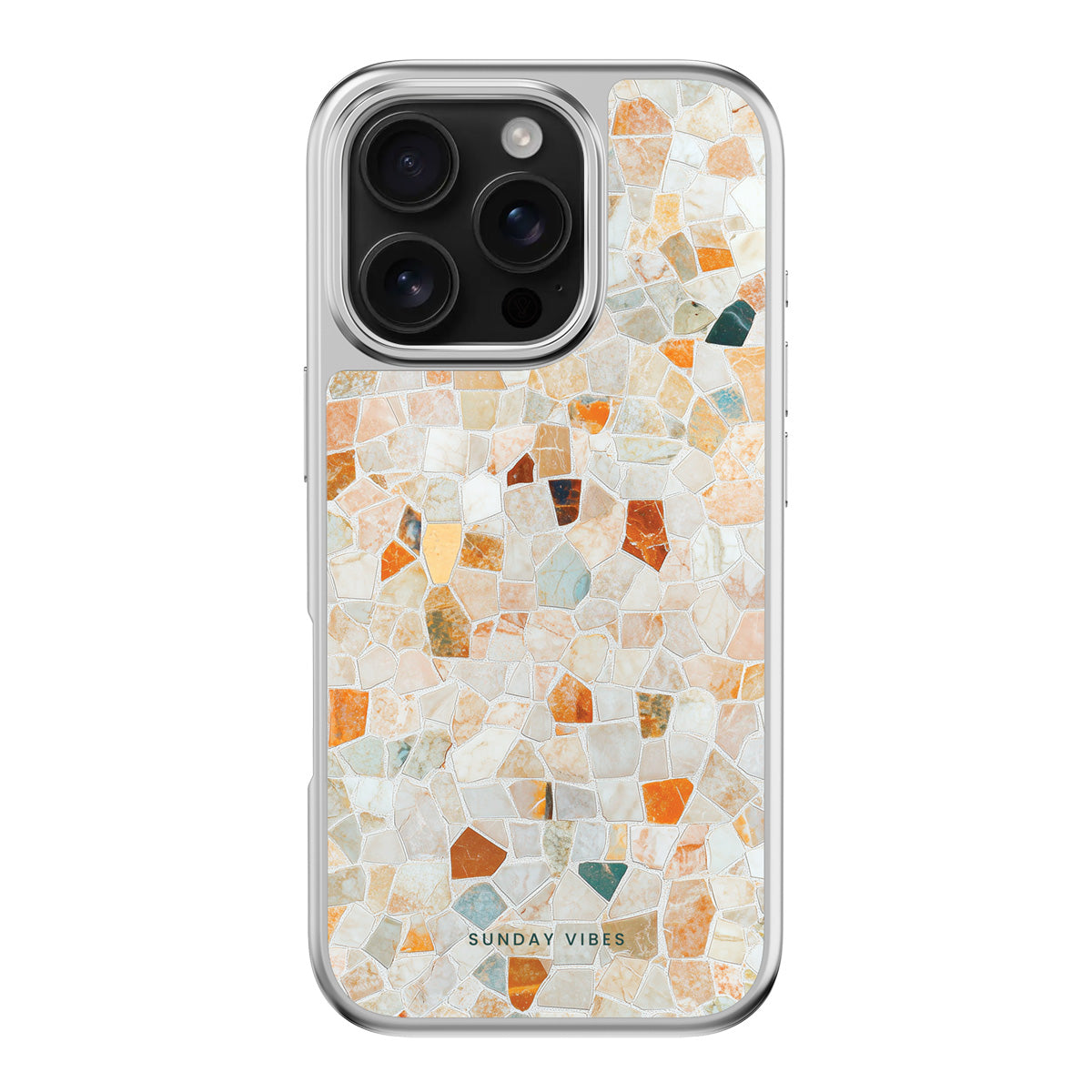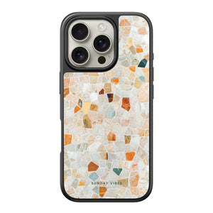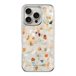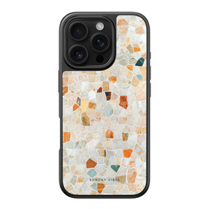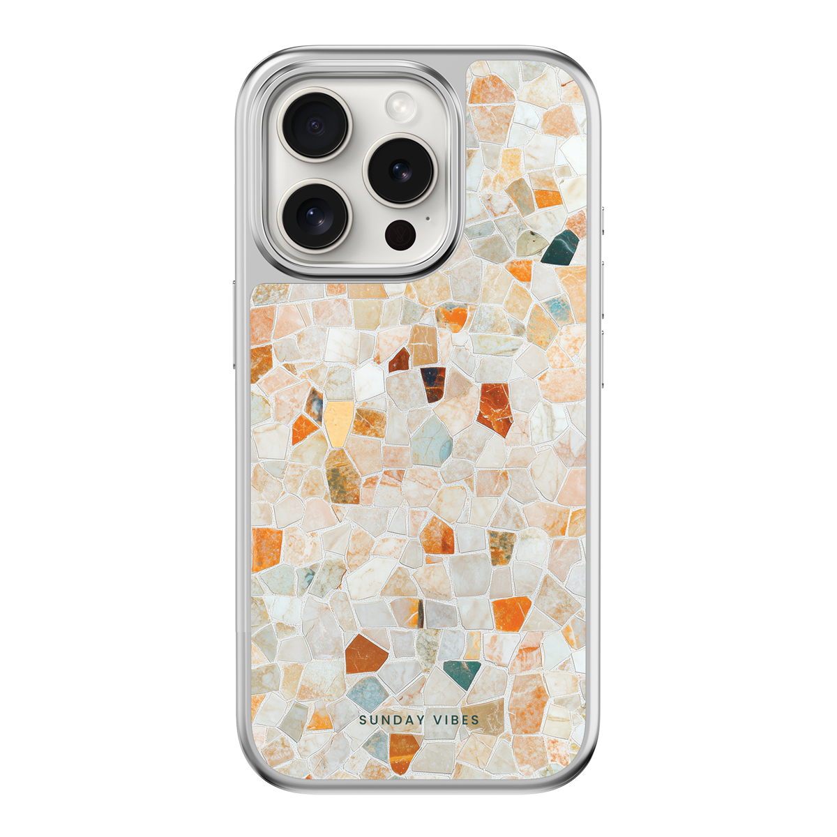 Transform your iPhone with the Mosaic Reverie iPhone Case. Its surface displays a captivating mosaic pattern, composed of an array of multicolored stone - like tiles in shades of beige, orange, and hints of blue and green. The intricate design exudes an air of artisanal craftsmanship and timeless elegance. Constructed with shock - absorbent edges, it offers reliable protection against daily impacts. The case's slim profile ensures easy portability, making it a perfect accessory for those who appreciate a blend of artistic allure and practical safeguarding.