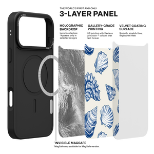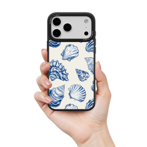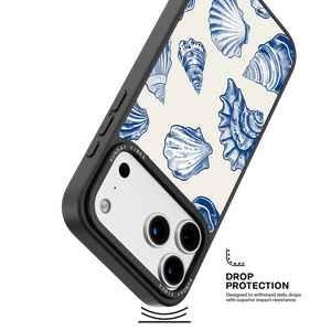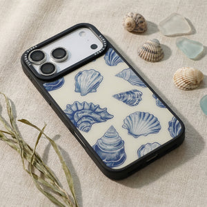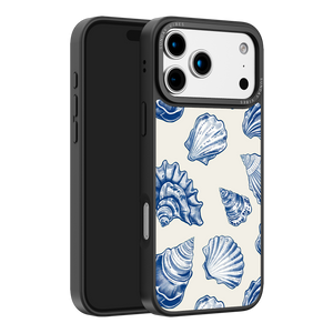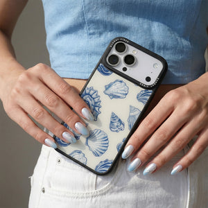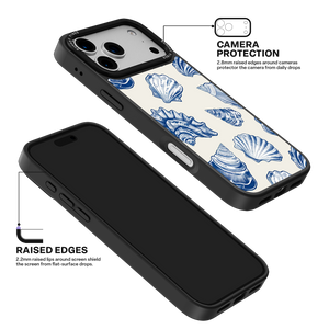 Capture the sophisticated romance of the high seas with the Nautical Shells iPhone Case. This exquisite design features a dense, detailed pattern of intricate sea shell engravings, rendered in deep navy blue against a smooth, creamy canvas. This beautiful print evokes the feeling of discovering lost coastal treasures, transforming your phone into an elegant, timeless piece of wearable art. The core aesthetic integrity is preserved by the case's premium 3-layer back panel: a base layer for protection, a middle ultra HD gallery print layer for precise detail, and a velvet smooth anti-scratch and anti-fingerprint top coating.