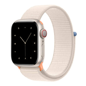 Give your Apple Watch a fresh and elegant upgrade with the Nylon Sport Loop in New Starlight. This lightweight, breathable band is crafted from soft woven nylon, ensuring all-day comfort with a moisture-wicking design. The adjustable hook-and-loop fastener provides a secure and custom fit for any activity.
