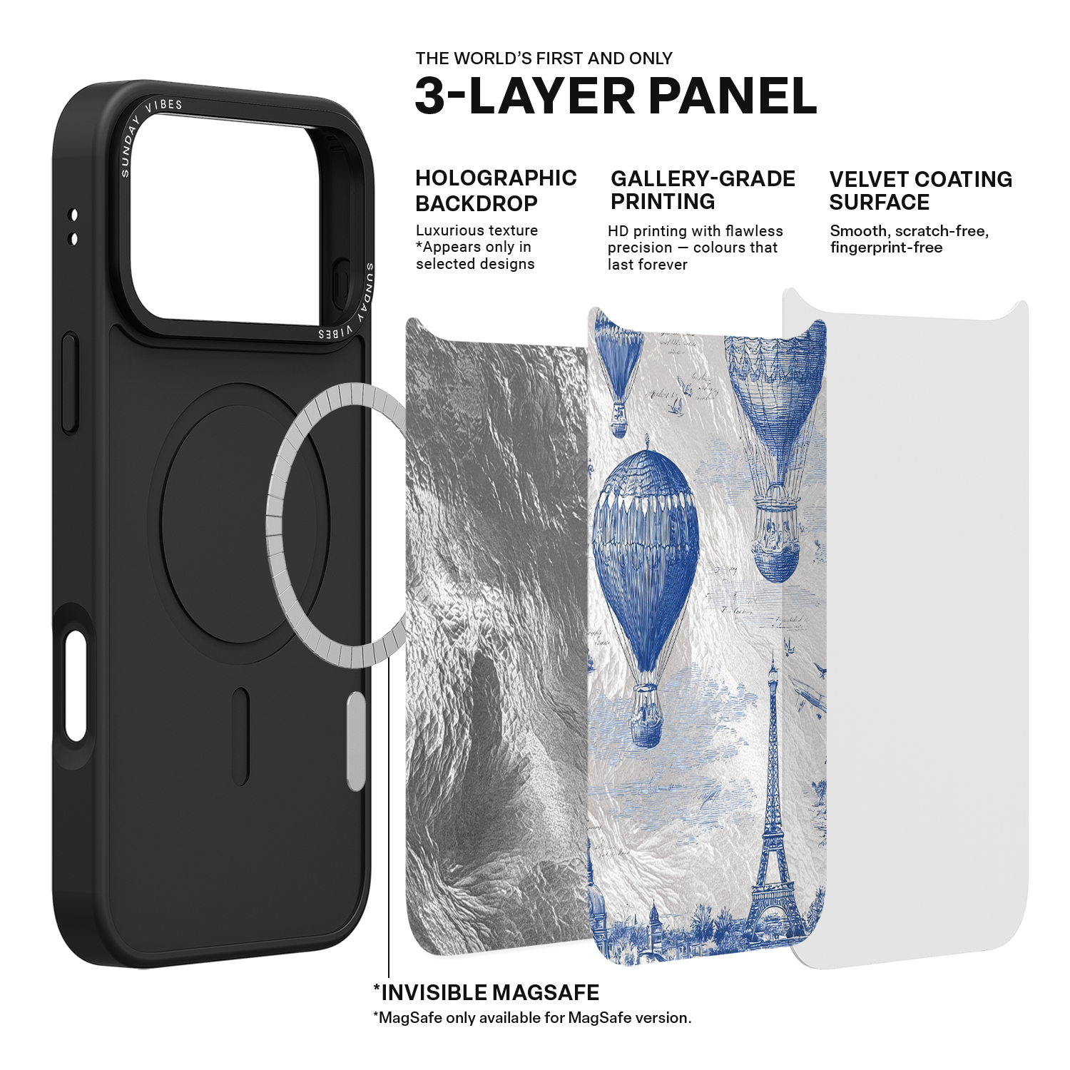 Our globally pioneering three‑layer back panel technology combines: