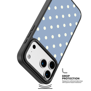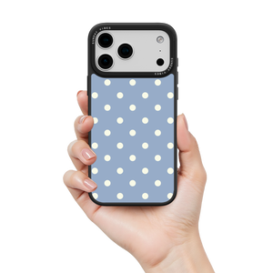 Step into the subtle glamour of vintage fashion with the Parisian Polka iPhone Case. This iconic large polka dot pattern, rendered in chic dusty blue and soft cream, gives your phone a timeless, romantic elegance perfect for styling with high-end outfits. The design effortlessly blends a playful motif with sophisticated colour use.