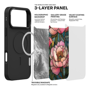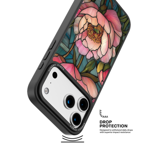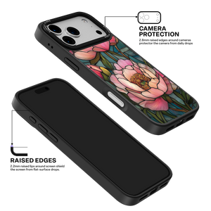 Adorn your device with the luxurious artistry of the Peony Reverie iPhone Case. This exquisite design captures a lush peony rendered in a jewel-toned, stained-glass aesthetic, where soft pink petals are dramatically outlined in black against a fractured blue and green background. This intricate, light-filled composition transforms your phone into a unique, wearable masterpiece. The core aesthetic integrity is preserved by the case's premium 3-layer back panel: a base layer for protection, a middle ultra HD gallery print layer for precise detail, and a velvet smooth anti-scratch and anti-fingerprint top coating.