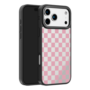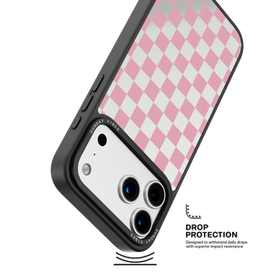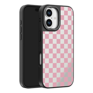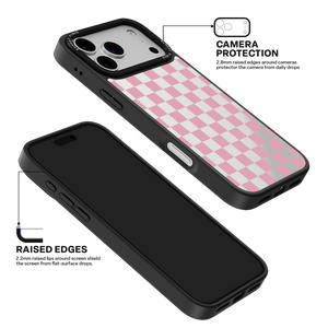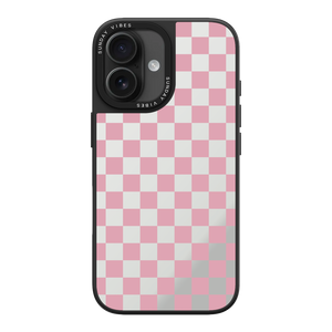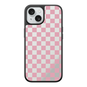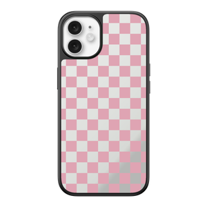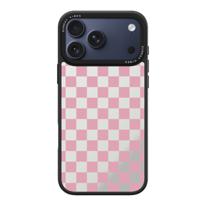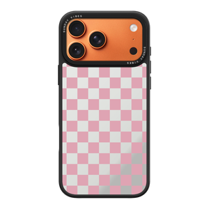 Make a captivating and high-contrast statement with the Pink Glitch iPhone Case. The classic geometric pattern over the dazzling mirror finish ensures your phone is the ultimate accessory for checking your look and adding a touch of bold, graphic style. The vibrant print and texture are applied directly onto the mirror surface for maximum effect.
