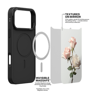 *Mirror Case Disclaimer: Our Mirror Case is designed as a fashion accessory, not a true glass mirror. The back panel is made from PVC plastic, which means it may show fingerprints or light scratches over time — just like a regular mirror surface. The reflection may appear slightly distorted due to the printed design or MagSafe ring. It’s not intended for checking your reflection, but for adding a chic, mirror‑inspired vibe to your phone.