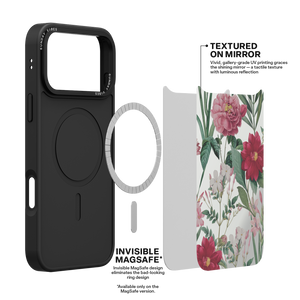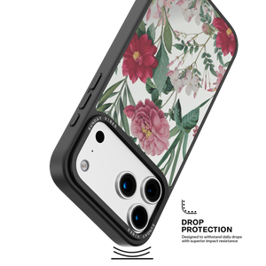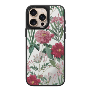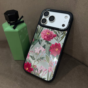 Elevate your look with the subtle, romantic glamour of the Rose Garden Gaze iPhone Case. The detailed floral pattern—featuring deep red dahlias and pink roses—pops beautifully against the high-shine reflective mirror backdrop. This design perfectly merges an elegant, vintage aesthetic with essential mirror convenience, allowing you to carry a piece of perpetual summer.